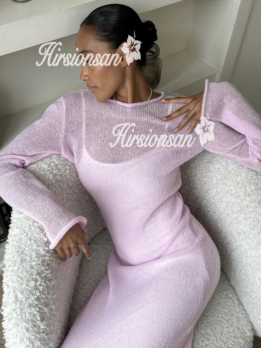 Hirsionsan Spring Autumn O-Neck Elastic Knit Long Dresses Women 2024 Elegant Chi