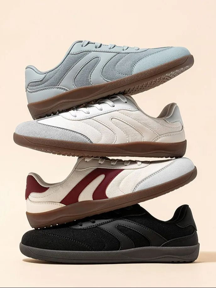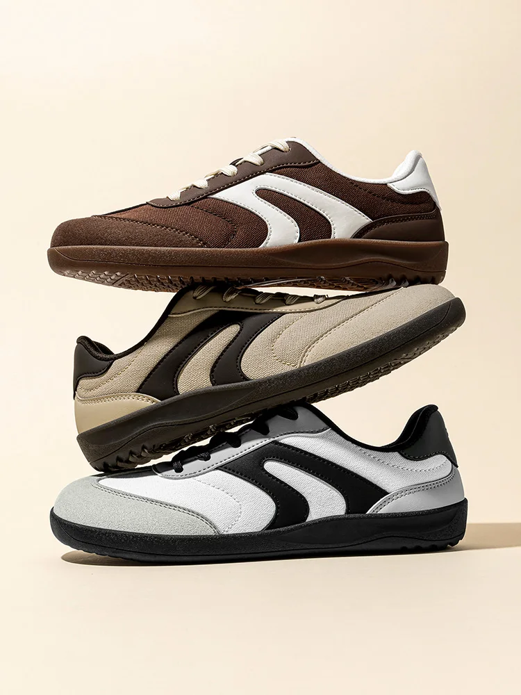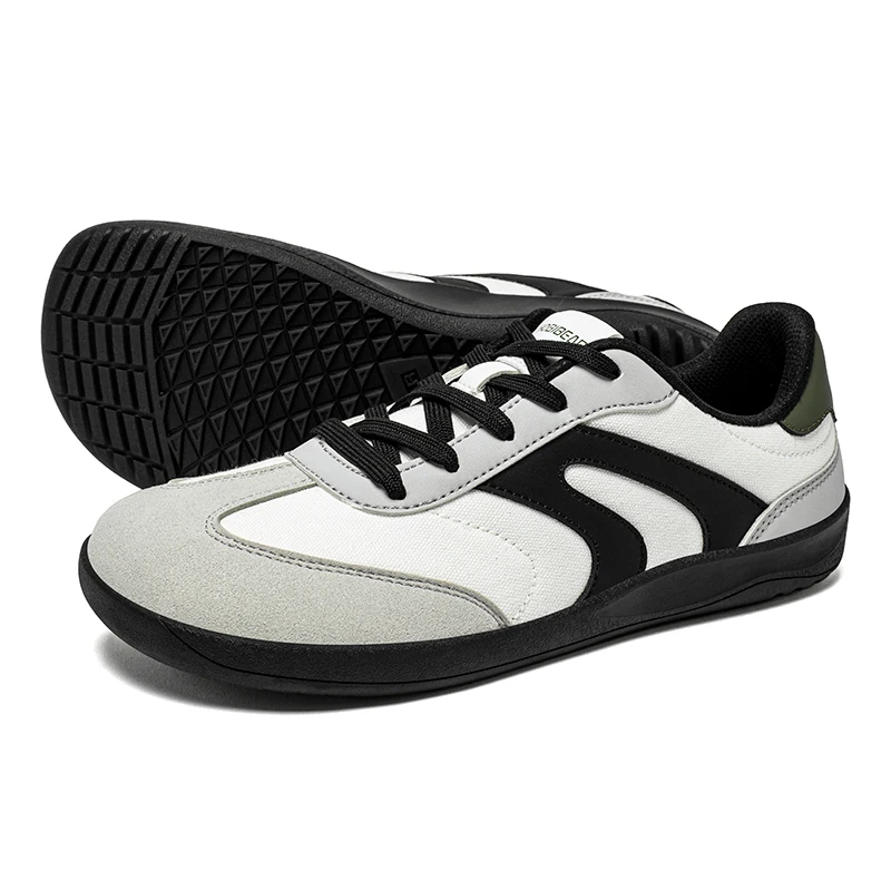 minimalist upper: The canvas upper material enhances the breathable speed of this wide-toe shoe, and the faux leather patchwork design is simple and elegant.