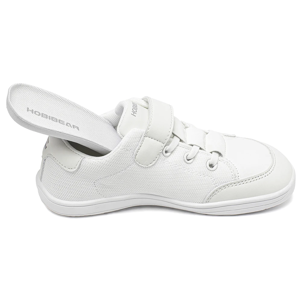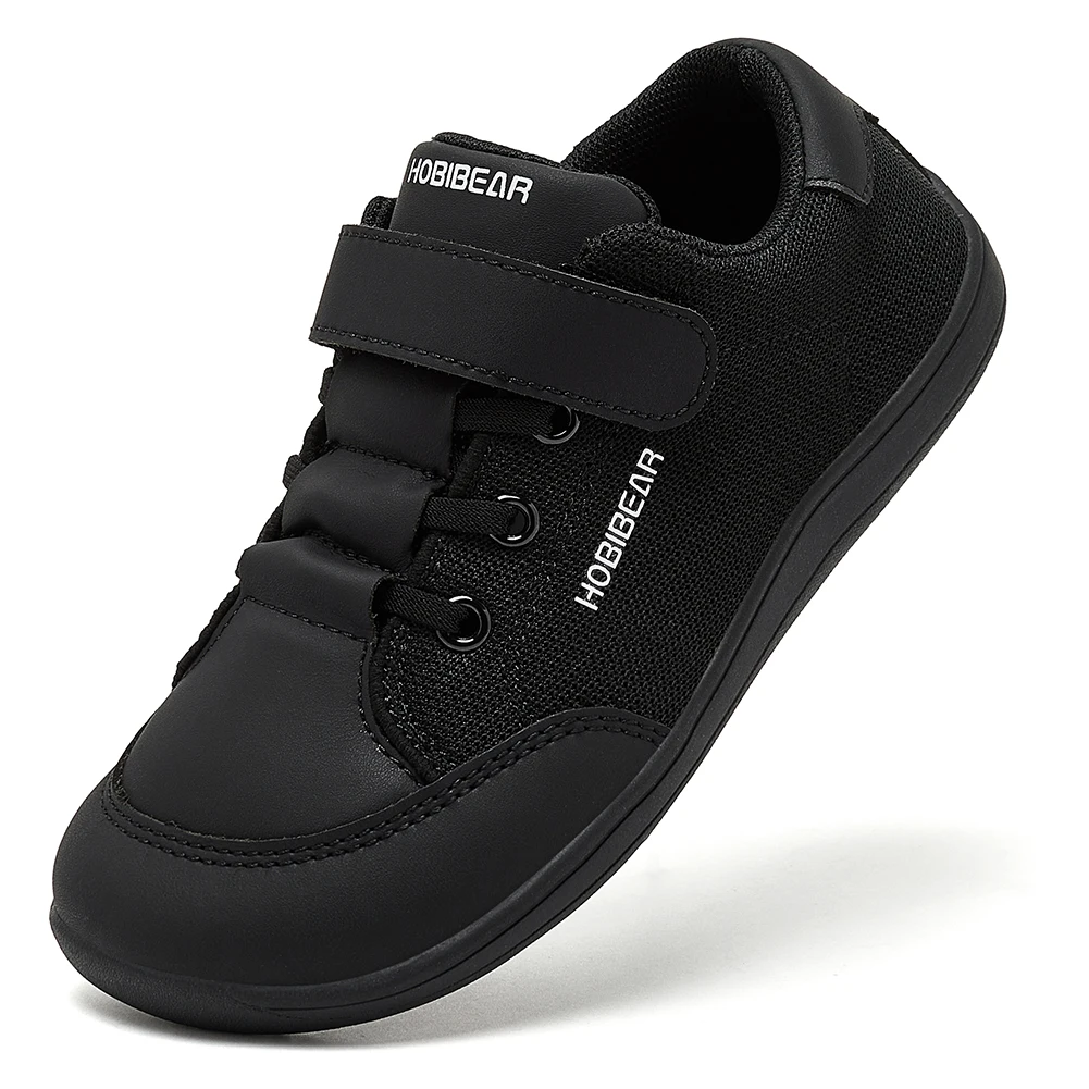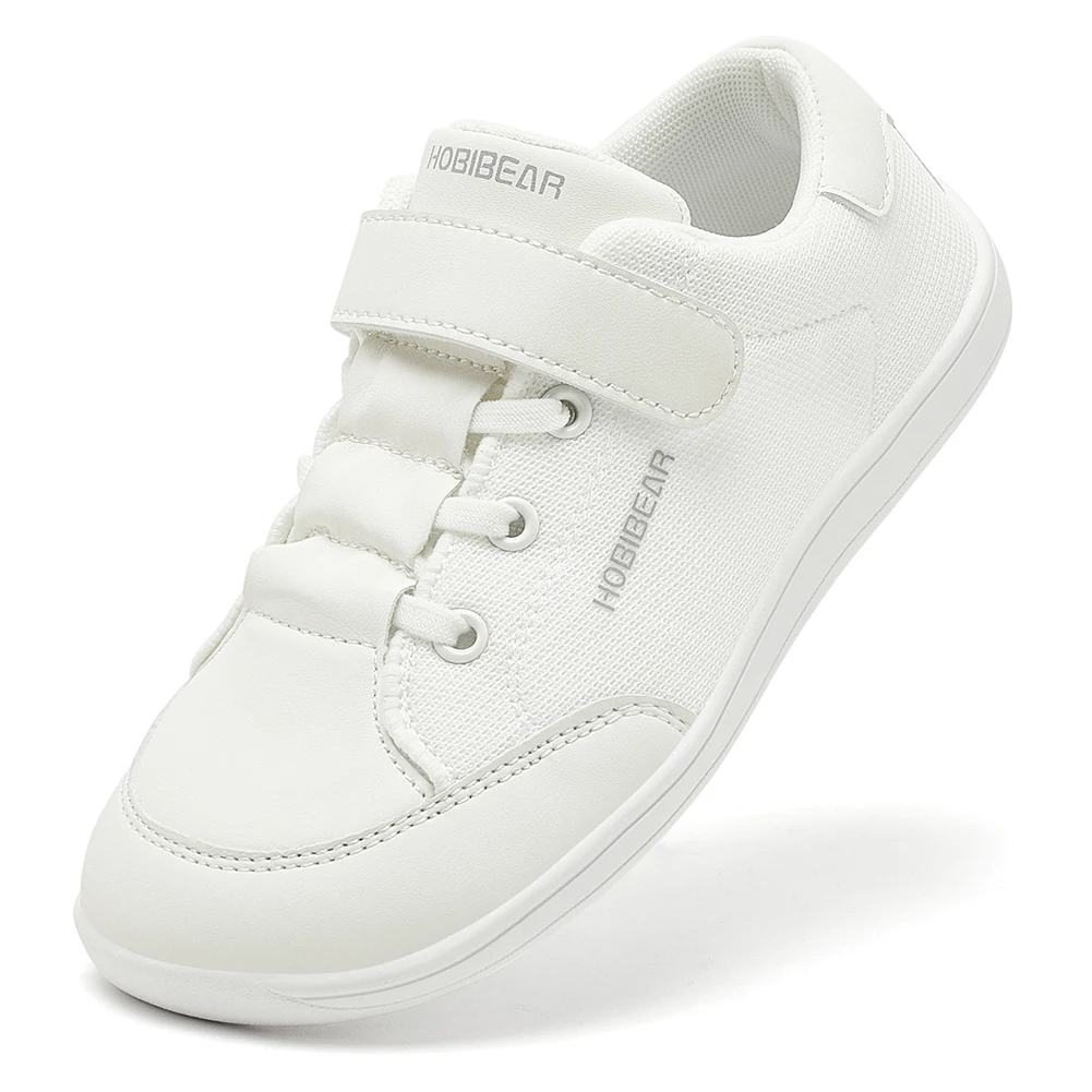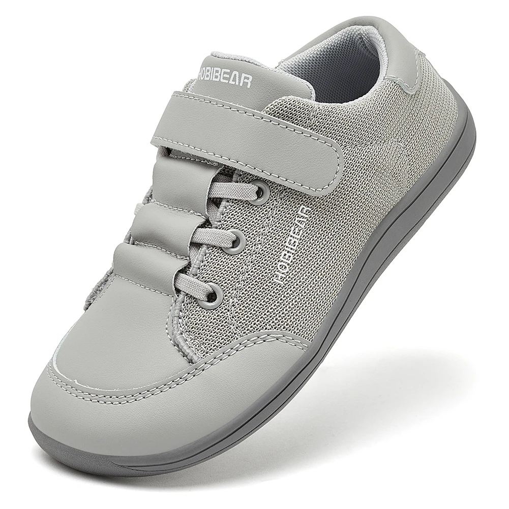 HOBIBEAR Kids Wide Toe Barefoot Shoes Boys Girls Minimalist Sneakers Lightweight Hook Loop Mesh Artificial Leather Shoes