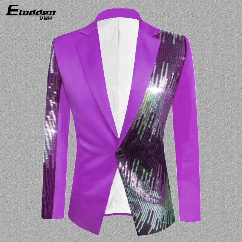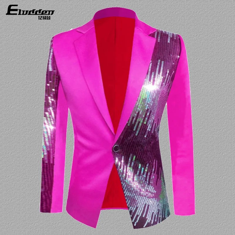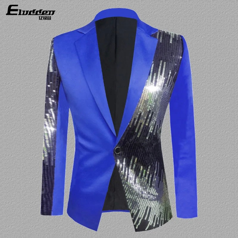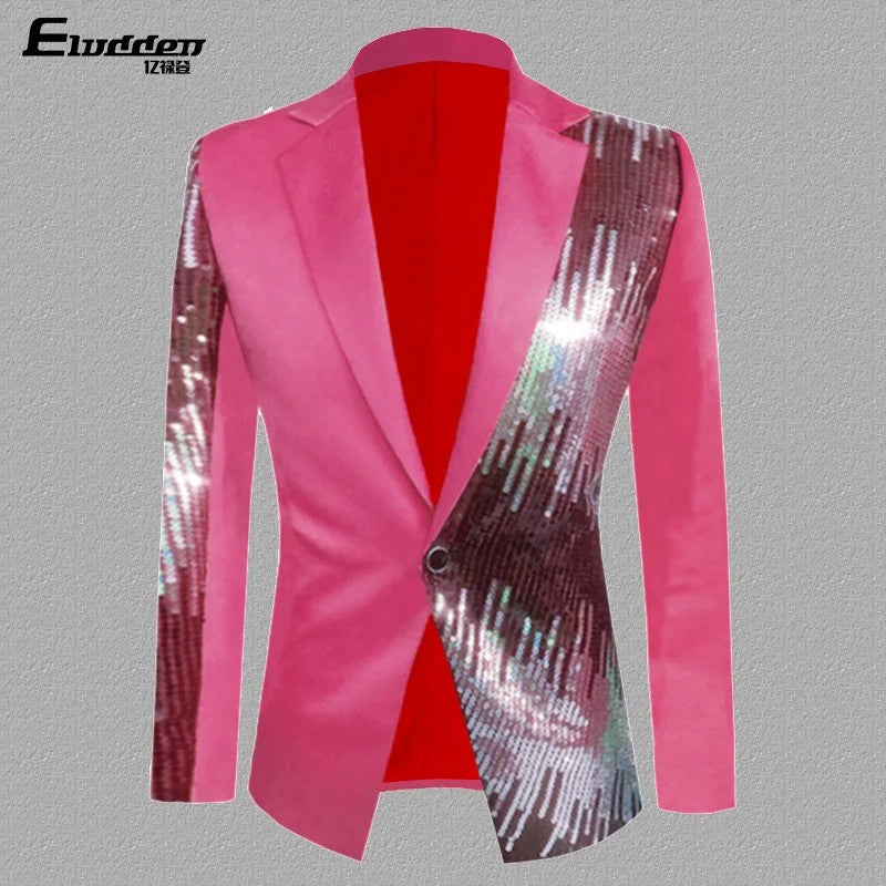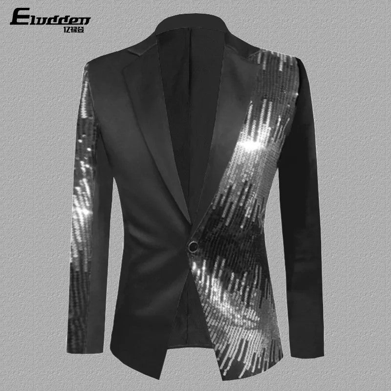 HOO 2025 Men's Color Matching Casual blazer Fashion Host Performance Sequined Dress
