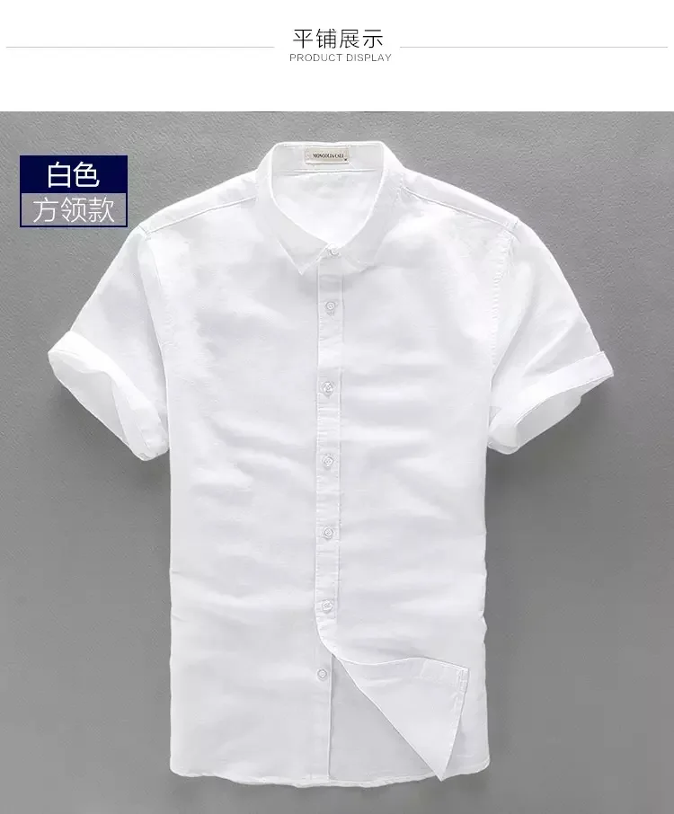 HOO2025 linen shirt young male leisure cotton shirts with short sleeves business cultivate one's morality thin comfortable shirt