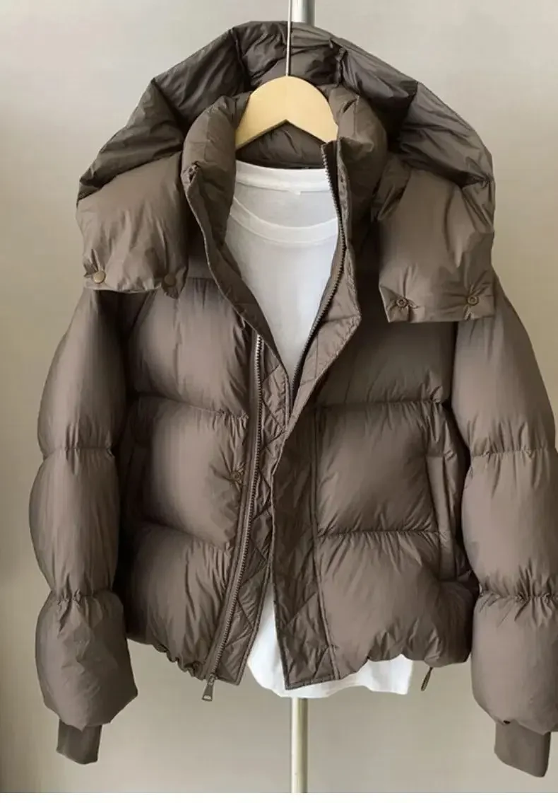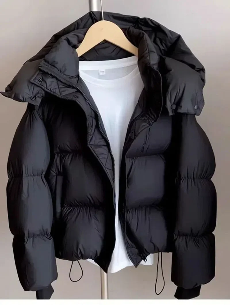 Hooded Cotton Jacket Women 2025 New Thickened Warm Long Sleeved Outwear Winter Korean Loose Solid Color Versatile Short Coat