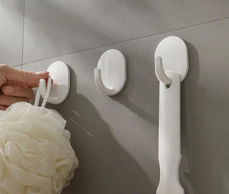 Hot Sale 4Pcs Self Adhesive Clothes Hook Wall Door Hook Bathroom White Towel Hanger Kitchen Wall Hanger Bathroom Accessories