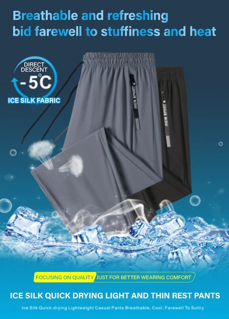 Ice Silk New Pants for Men's Summer Thin Style Sports Quick Dried Straight Leg Draping Wide Leg Pants Casual Long Pants for Men