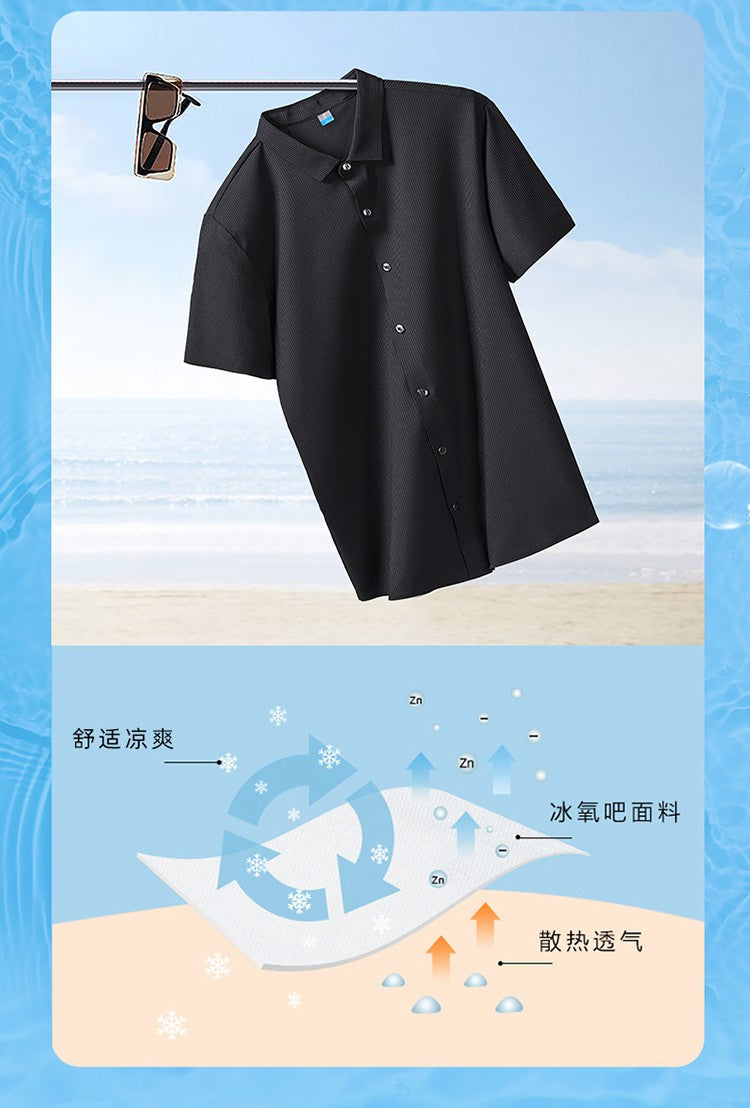 Ice Silk Shirts Man Short Sleeve Top Male Quick Dry Cool Classic Big Size 5XL 6XL 7XL 8XL Large Plus Loose Summer Social Blouse
