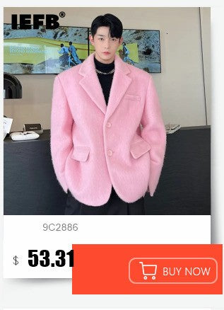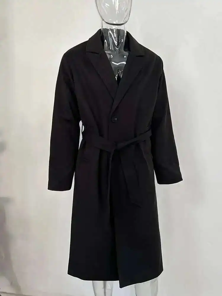 IEFB Korean Style Men's Fashion Tide Woolen Coat Single Breasted Overcoat 2025 Autumn New Stylish Trench Casual Loose Fit 9D1655