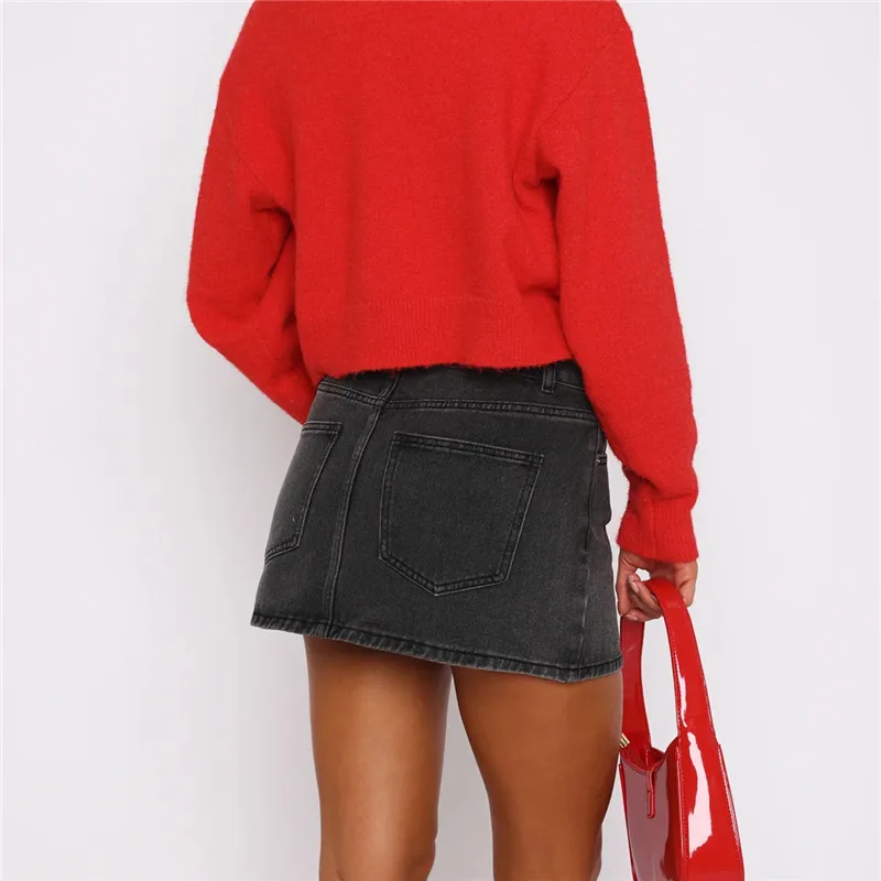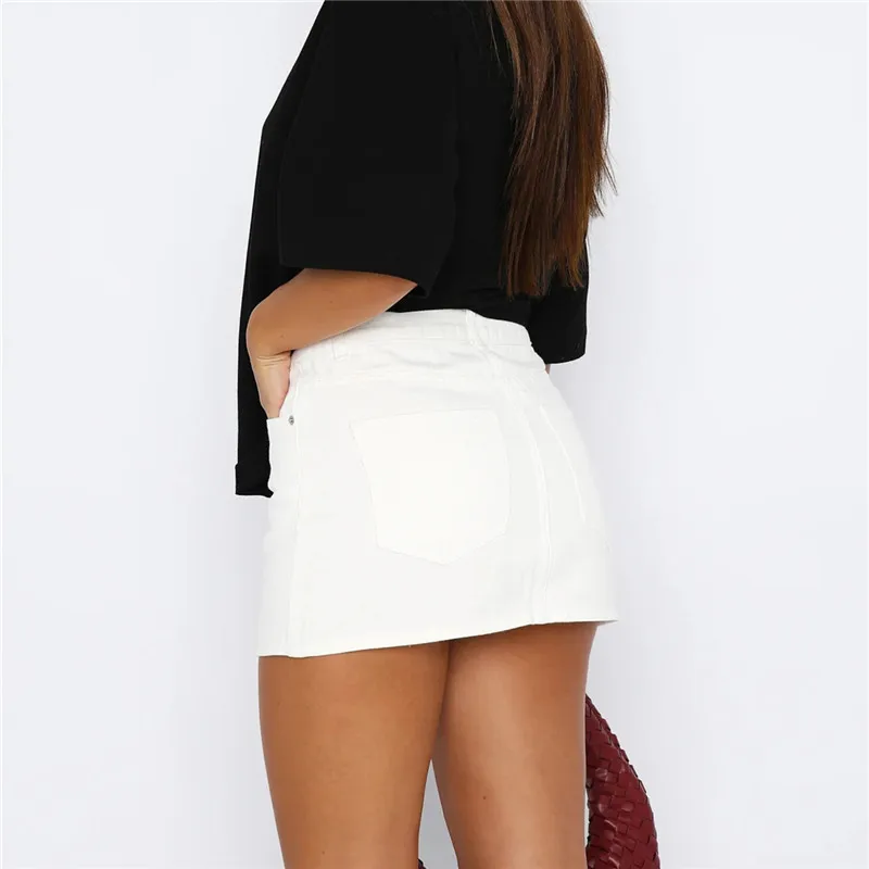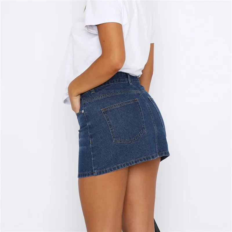 Imcute Women Y2k Denim Mini Skirt Fashion Low Rise A-Line Slim Fit Button Up Summer Trendy Short Jean Skirt with Pockets