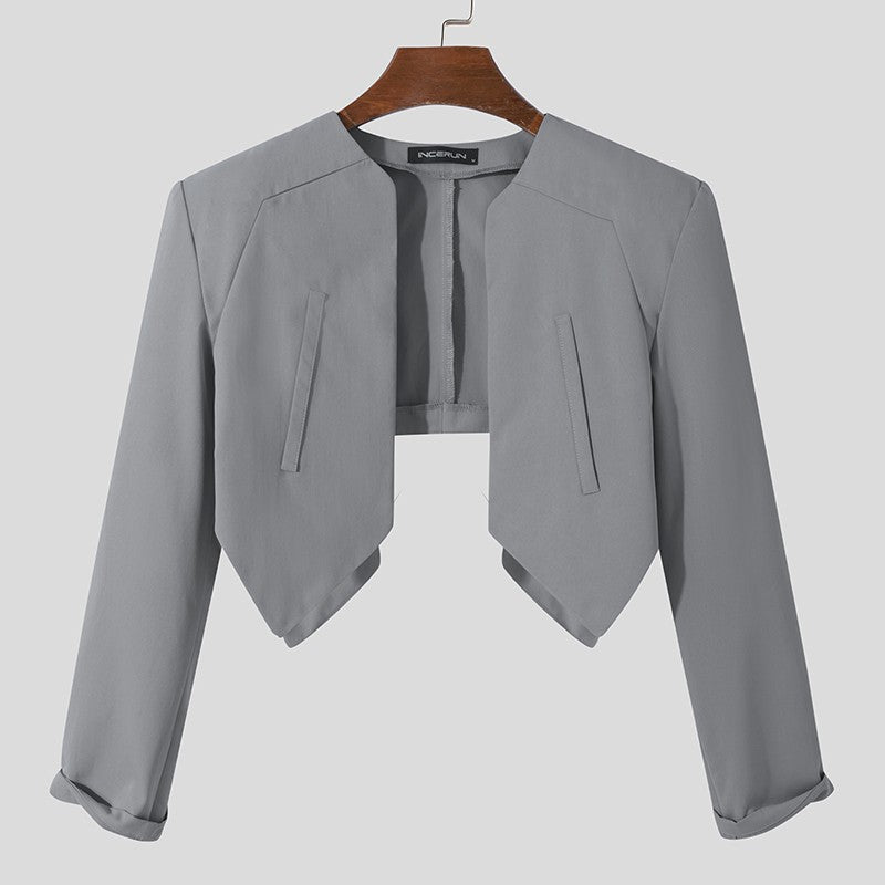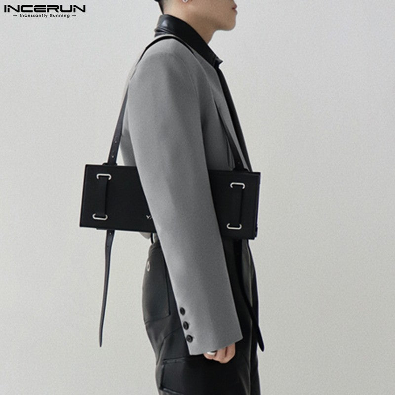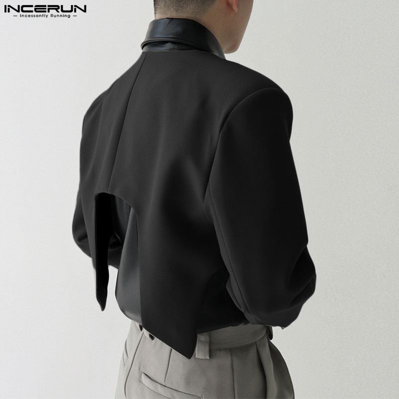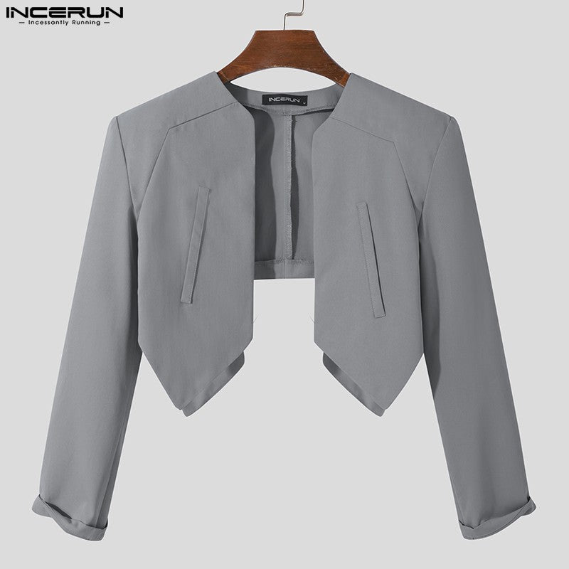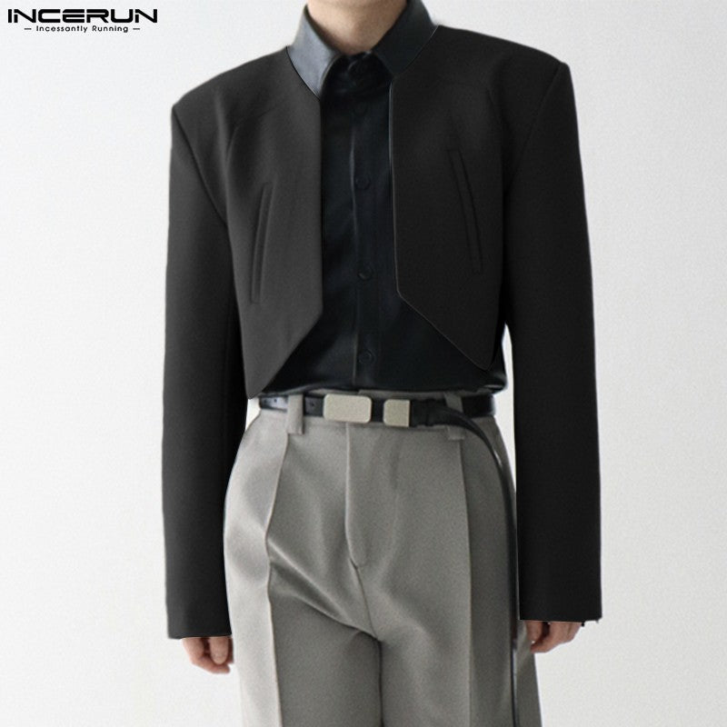 INCERUN Men Blazer Solid Color Open Stitch Long Sleeve Irregular Thin Suits Men 2024 Streetwear Fashion Casual Crop Coats S-5XL