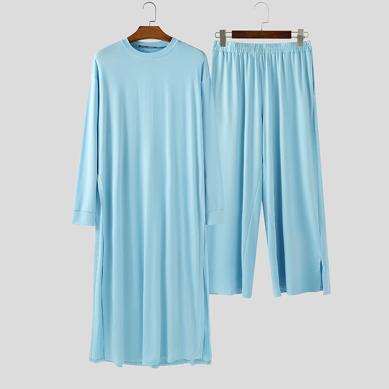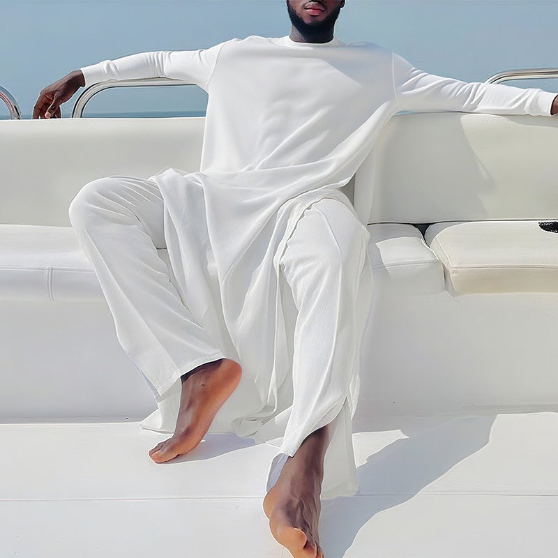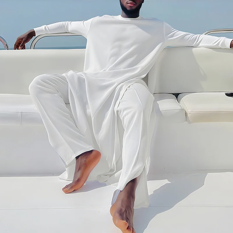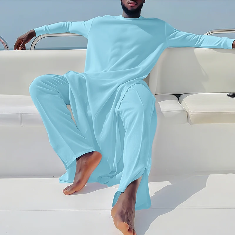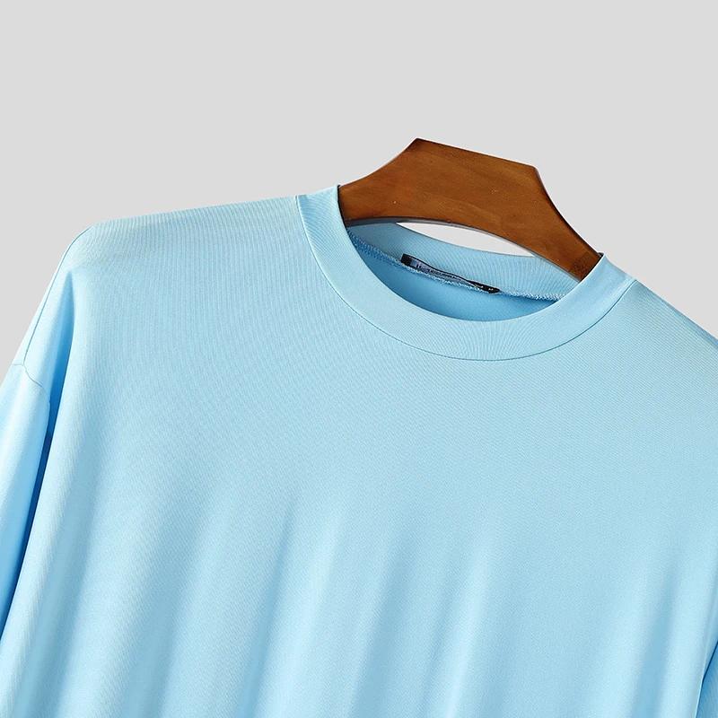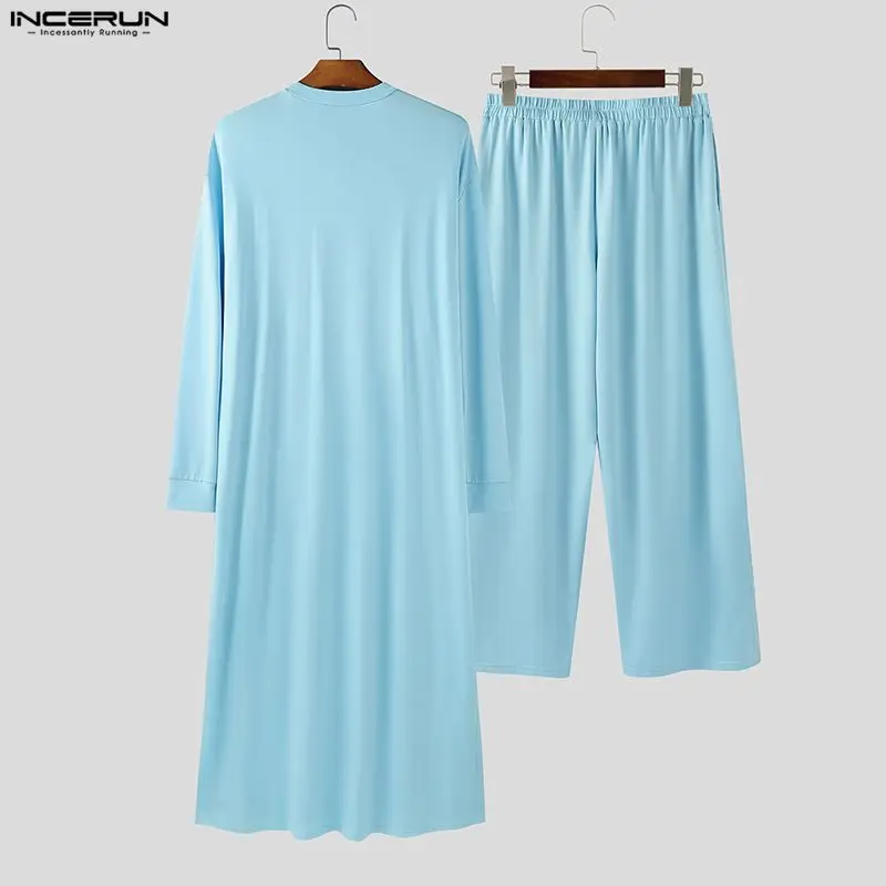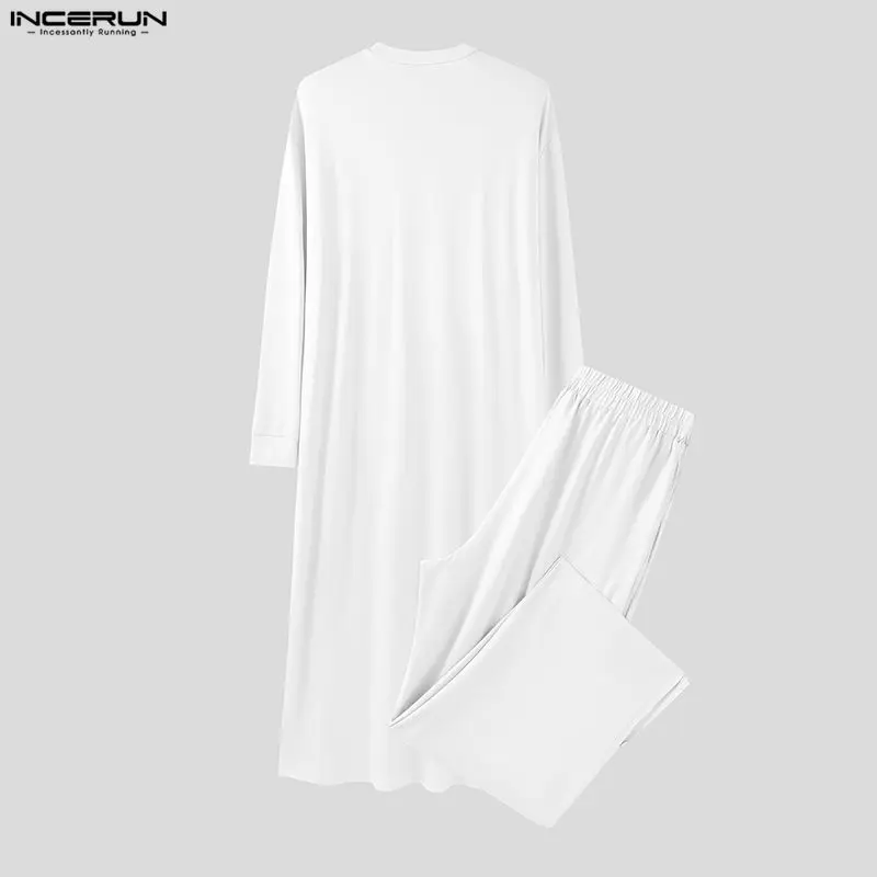 INCERUN Men Sets Solid Color Long Sleeve Long Style T Shirt & Pants Two Pieces Sets Loose Streetwear Fashion Casual Men Suits