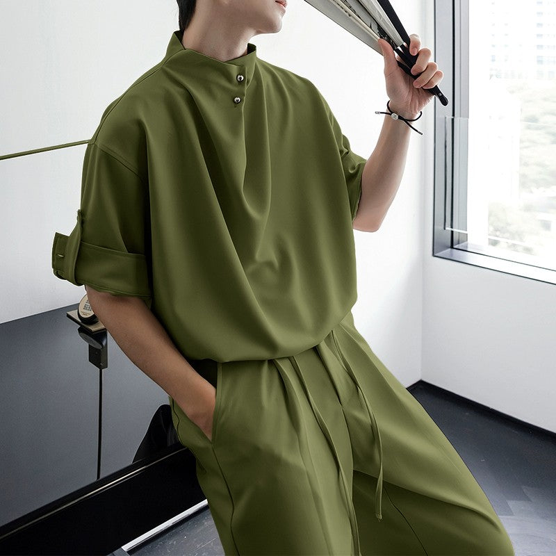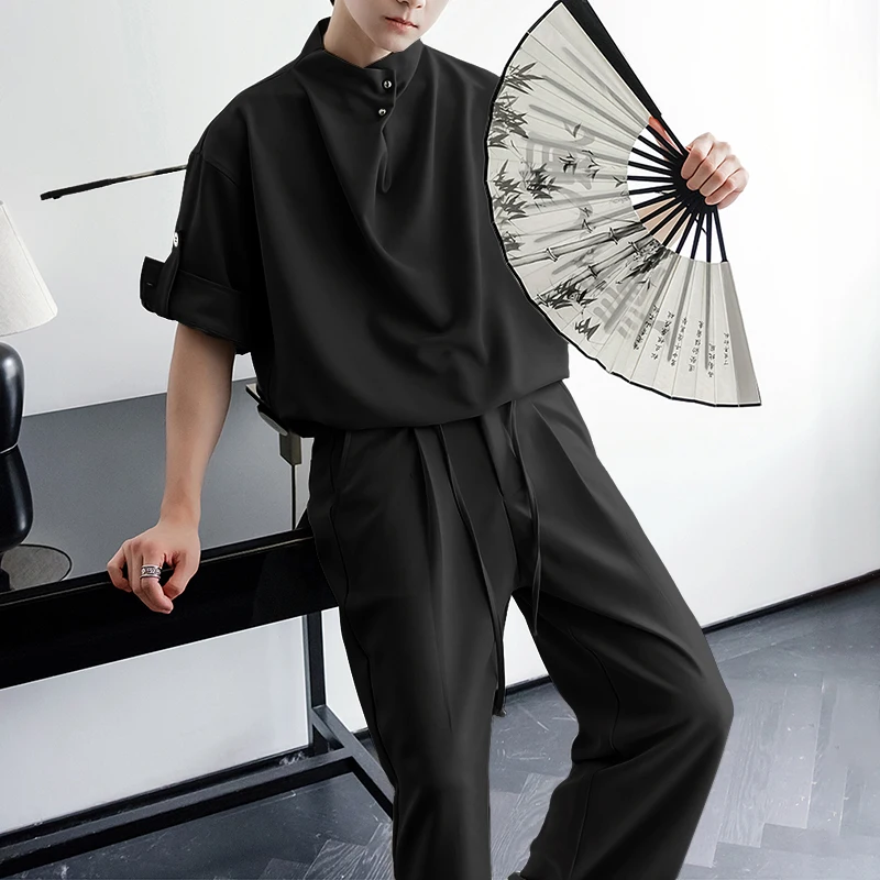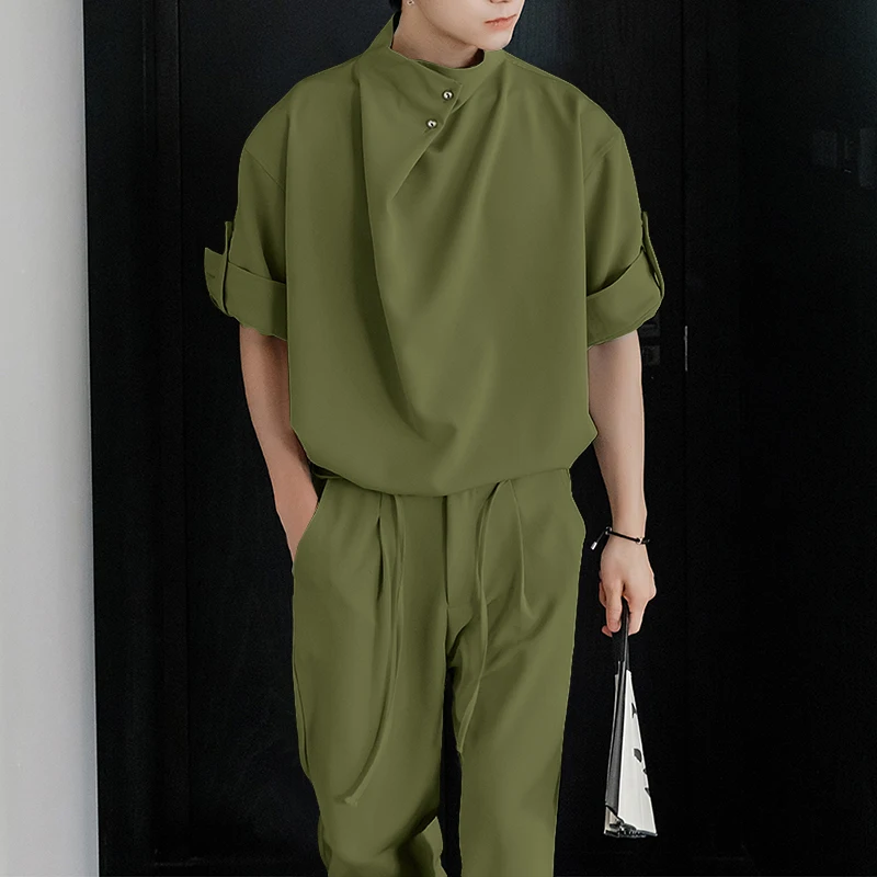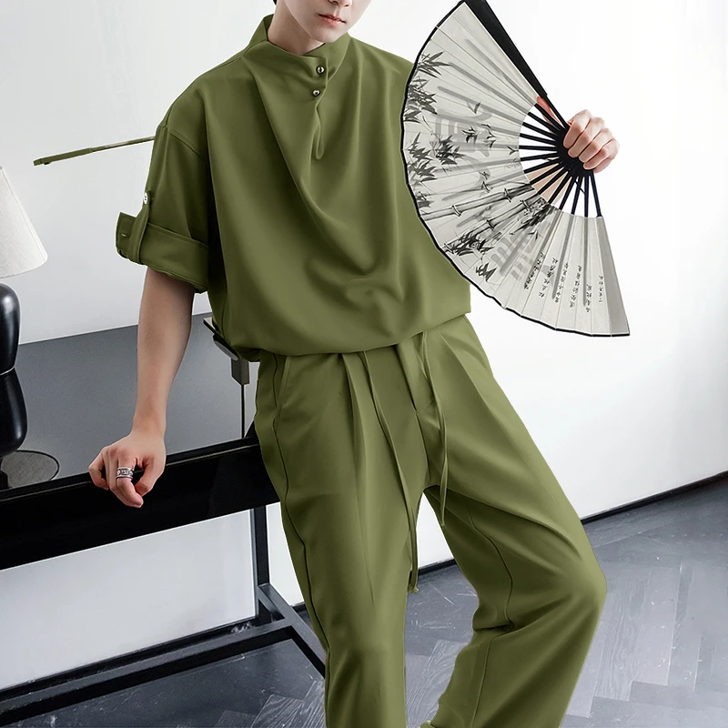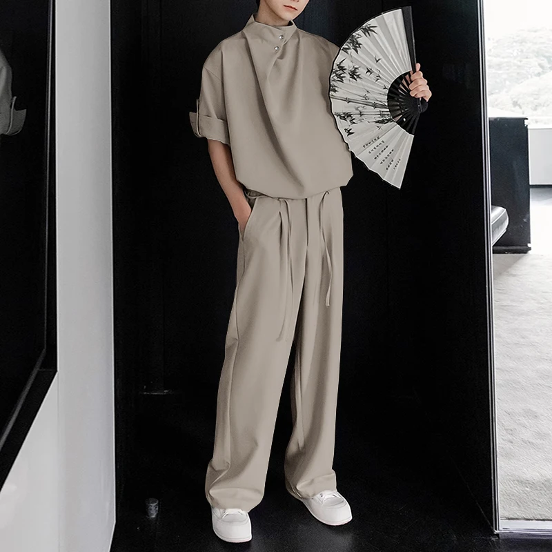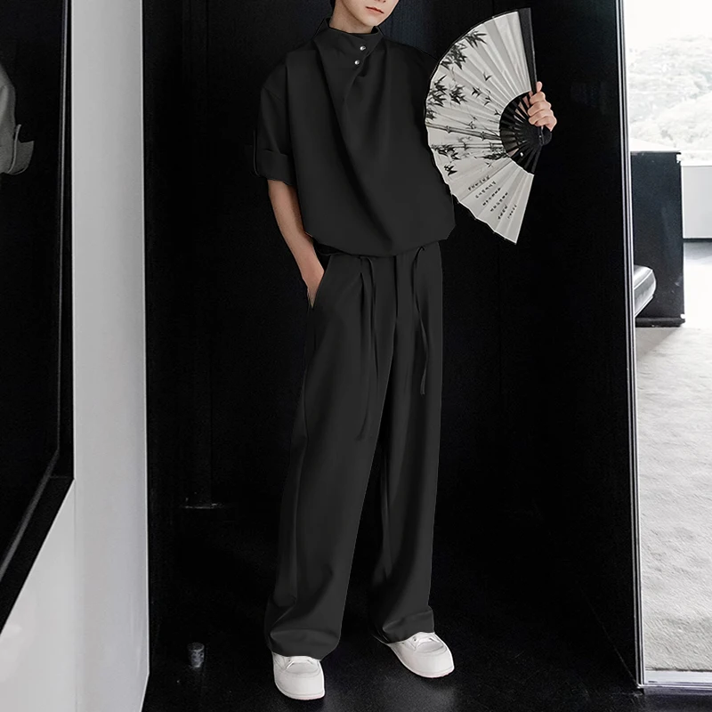 INCERUN Men Sets Solid Color Pleated Shirt & Pants Two Pieces Sets Loose Streetwear 2025 Fashion Men's Casual Suits S-5XL