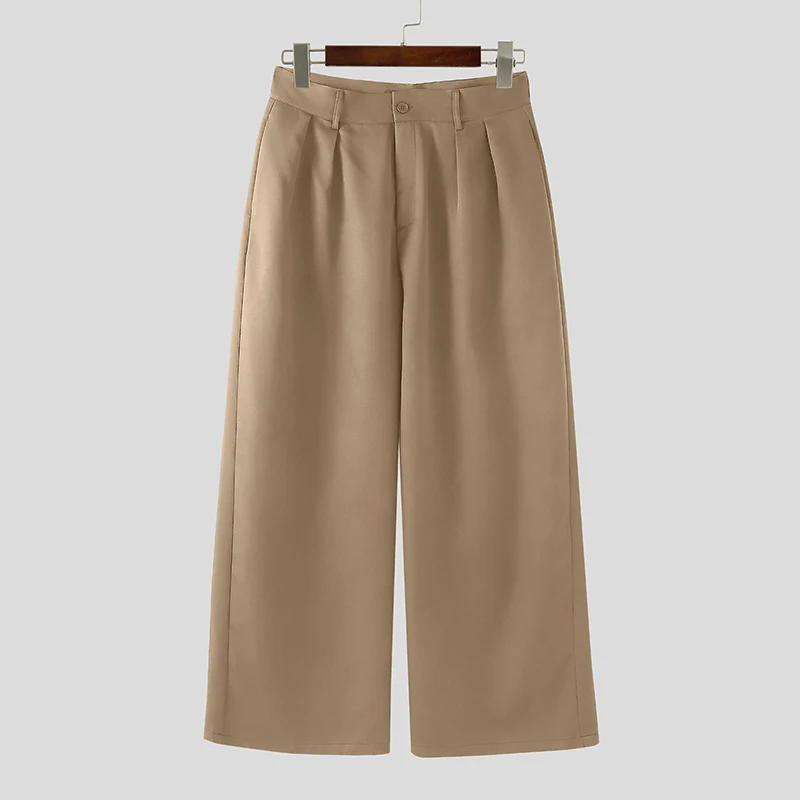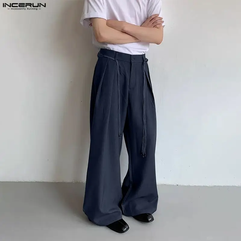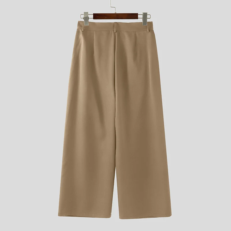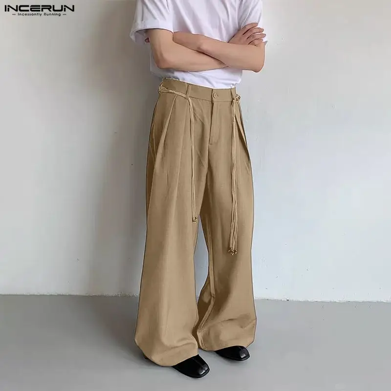 INCERUN Men Wide Leg Pants Solid Button Joggers Loose Casual Trousers Men Streetwear Korean Style Fashion Male Long Pants S-5XL