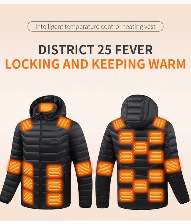 Intelligent Electric Heated Jacket Men Winter Warm Parka 3 Modes Adjustable Anti-Cold Ski Outdoor Camping Hiking Thermal Coat