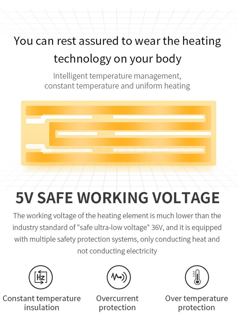 | Step1: Open the pocket and connet the USB with the portable battery | Step2: Press and hold for 3-5 seconds to start the heating |