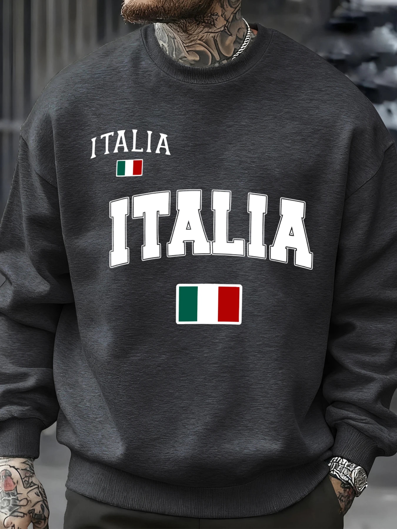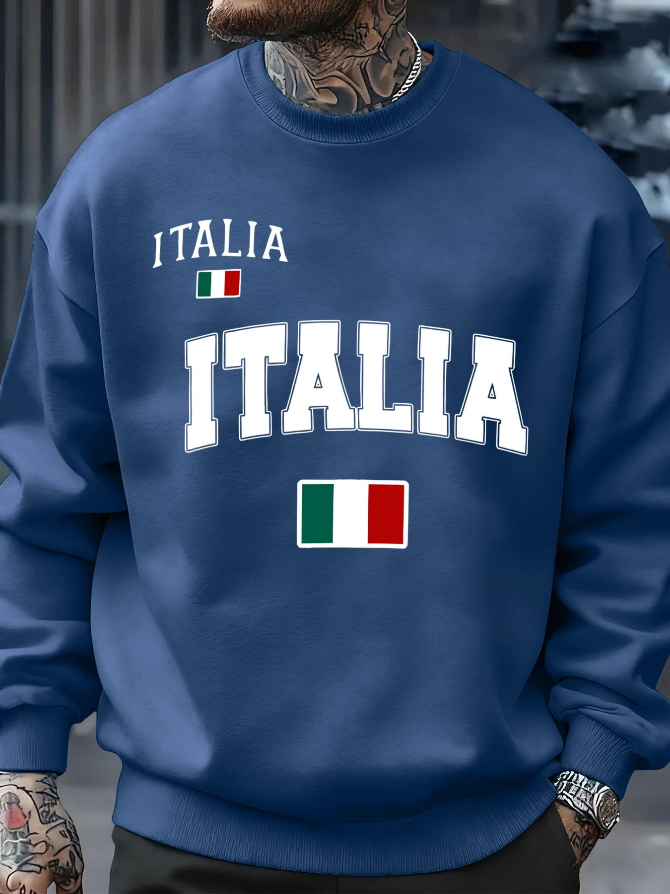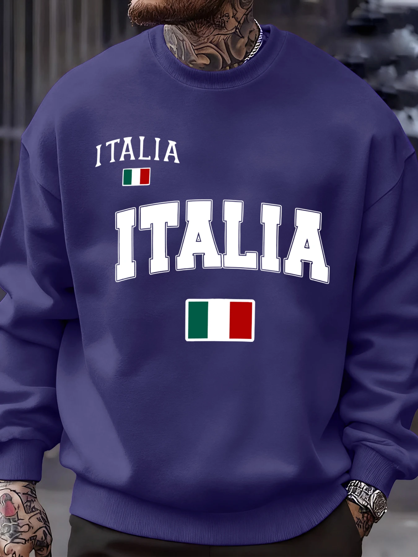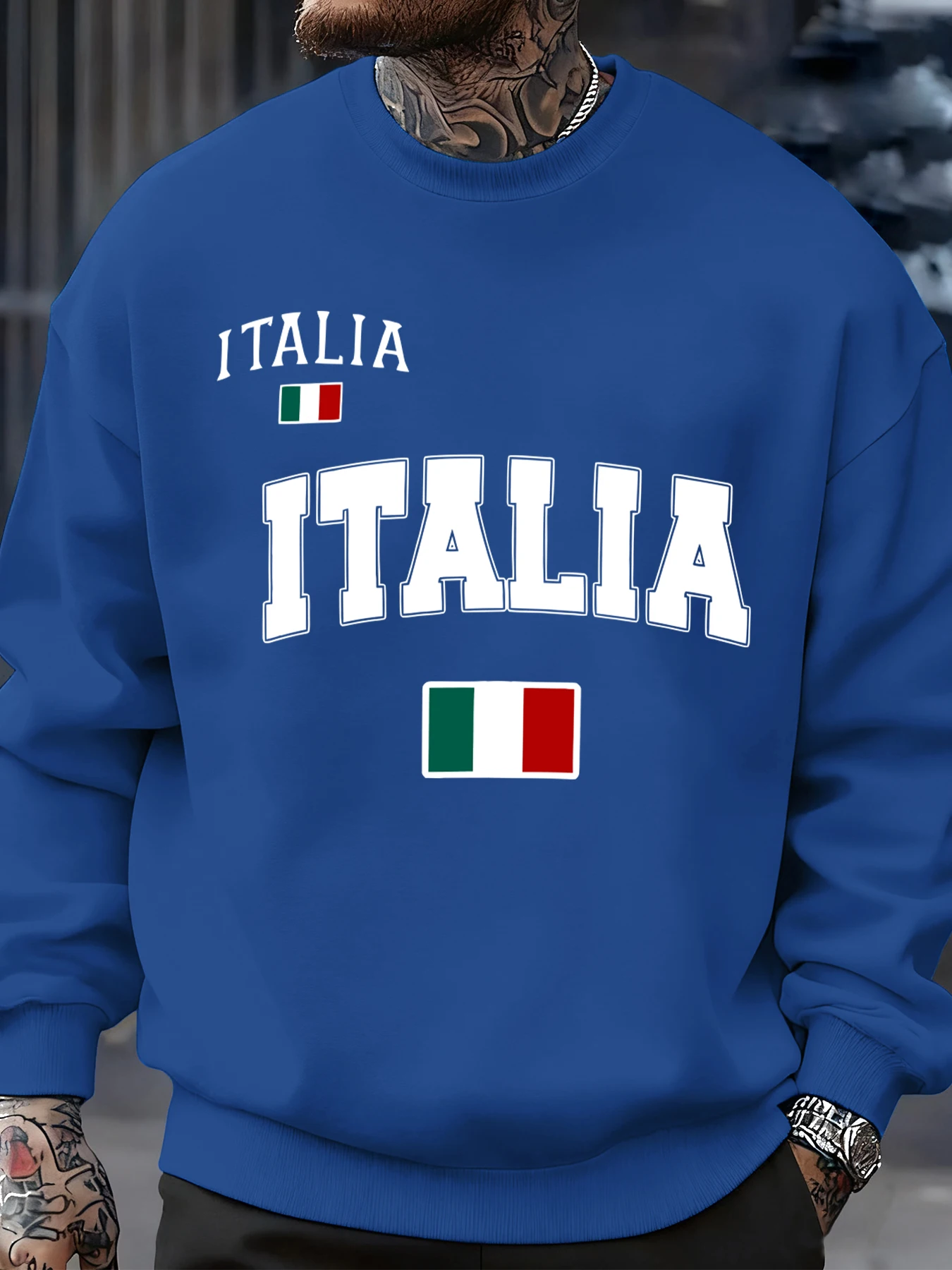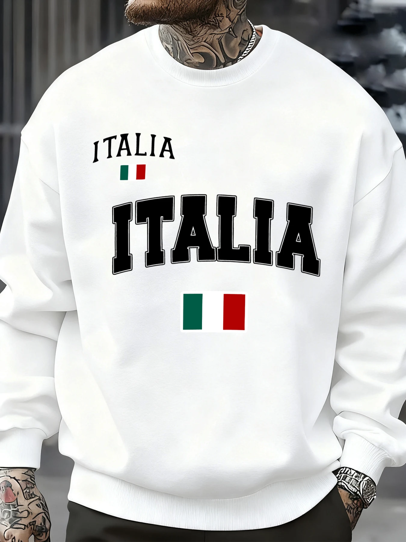 Italia Italian Flag Print Autumn Men Sportswear Fleece Sweatshirt Street Casual Pullovers Oversized Clothes Unisex Fashion Tops