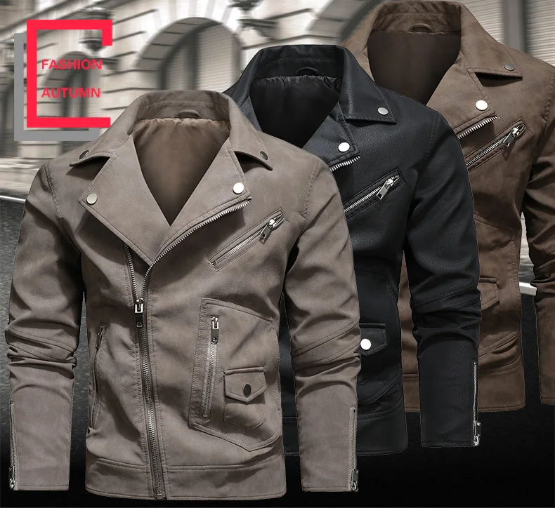 Jacket Men Coat Winter Leather Bomber Genuine Casual Brown Jackets Coats Faux Leather Vintage Black Biker Jacket Men Windproof