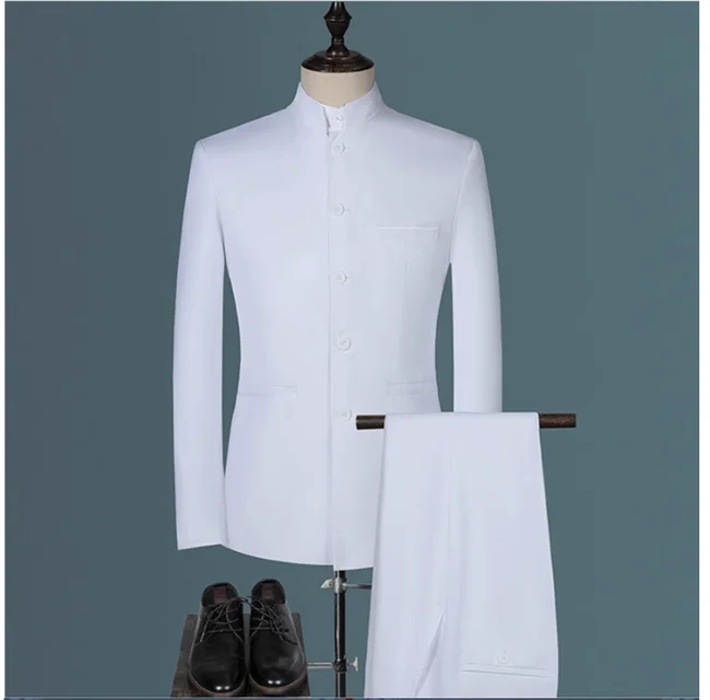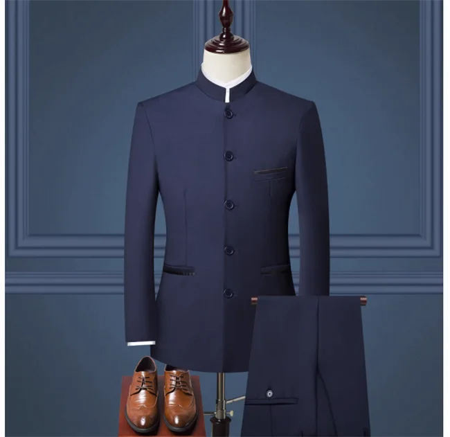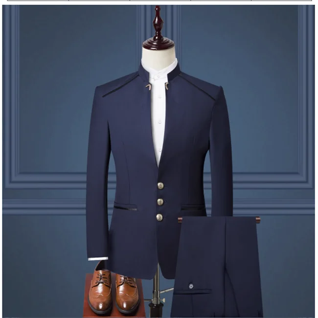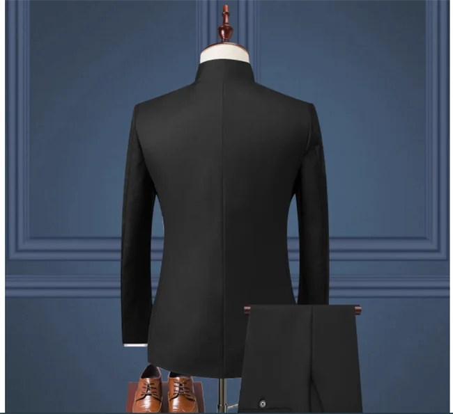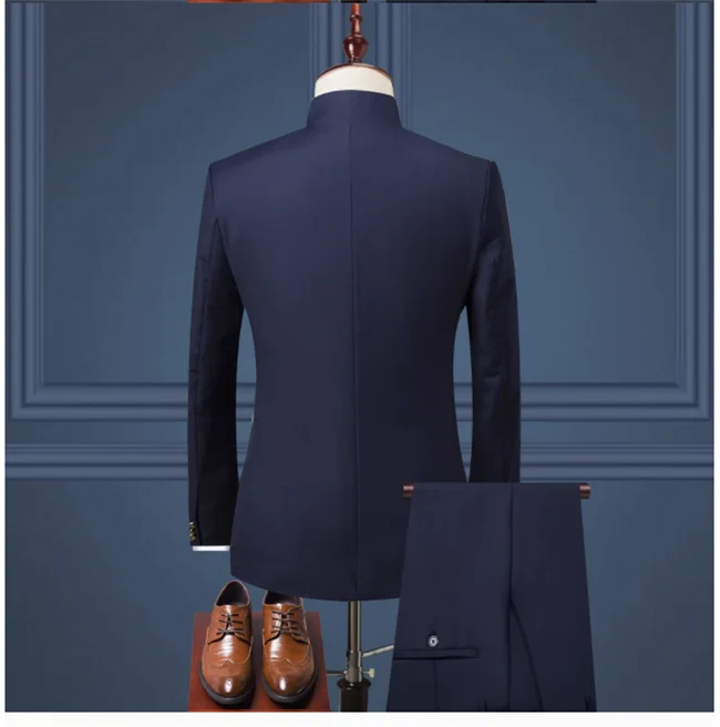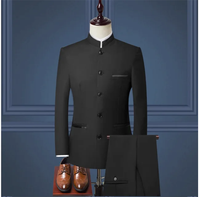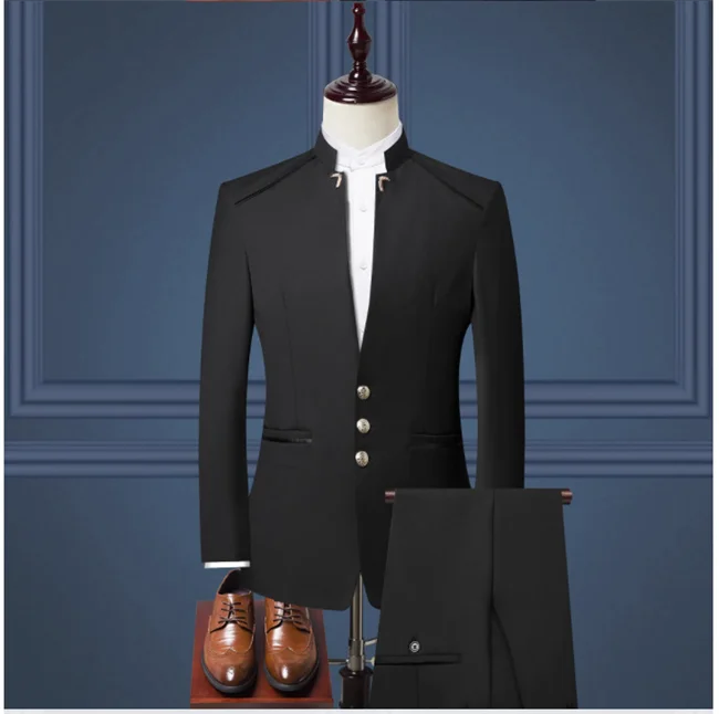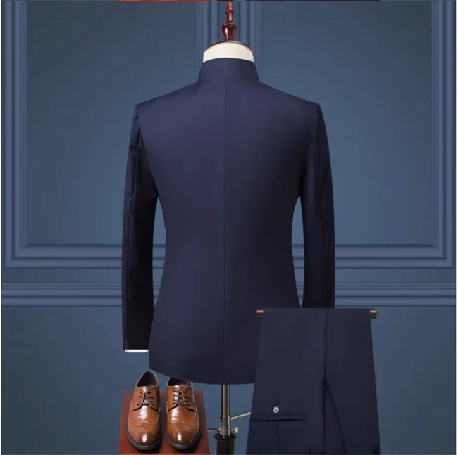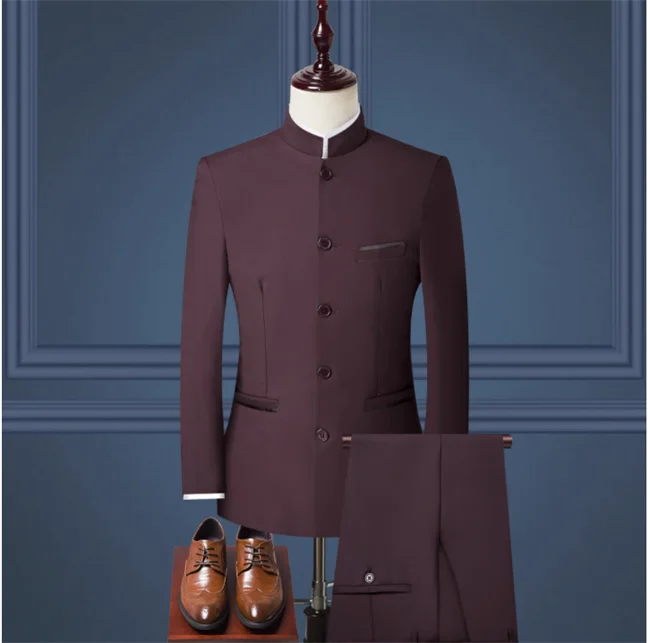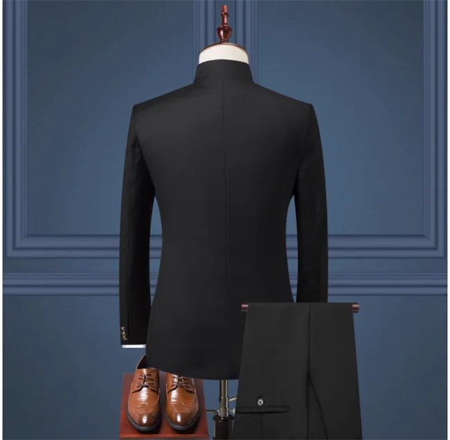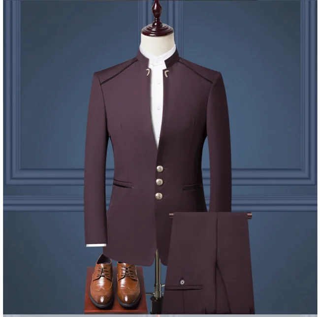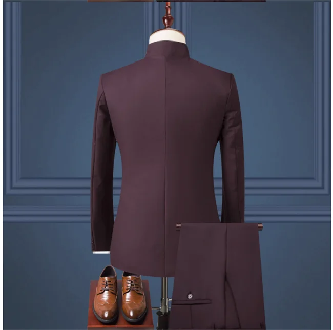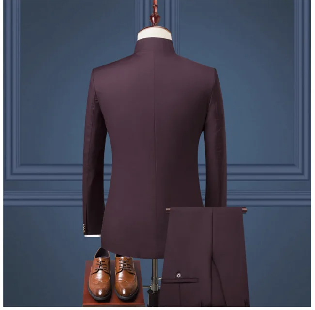 (Jacket+Pants) Men Fashion Simple Wedding Suit Black / Blue / Wine Red 2025 Homme Stand up Collar Business Social Dress 2Piece