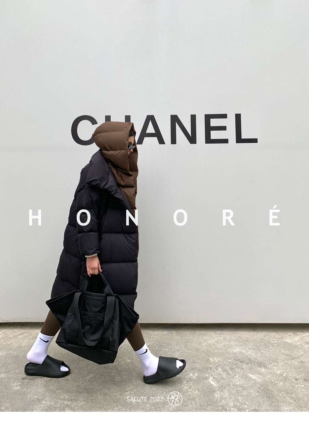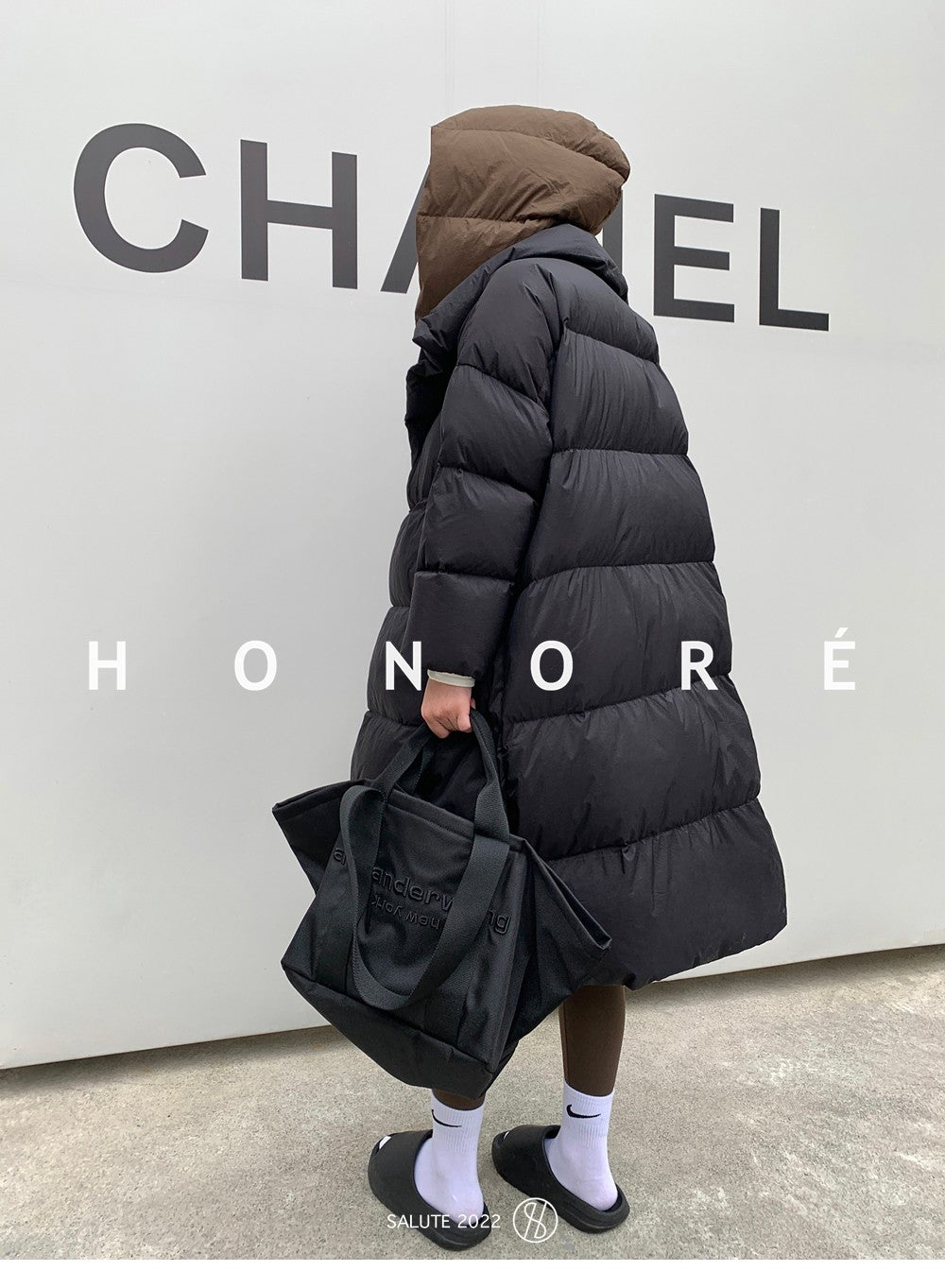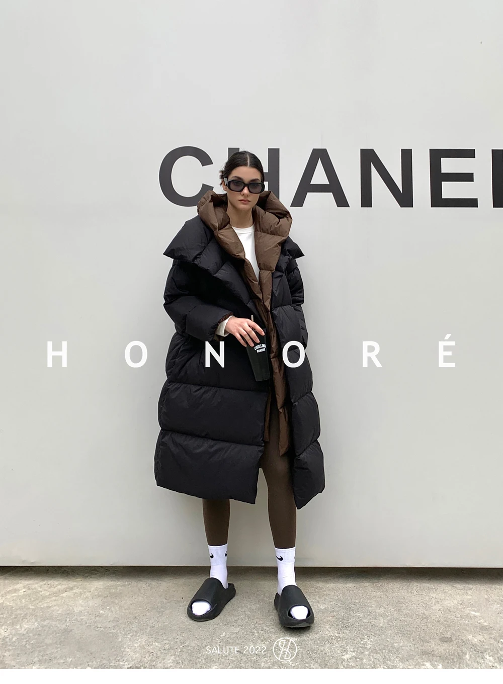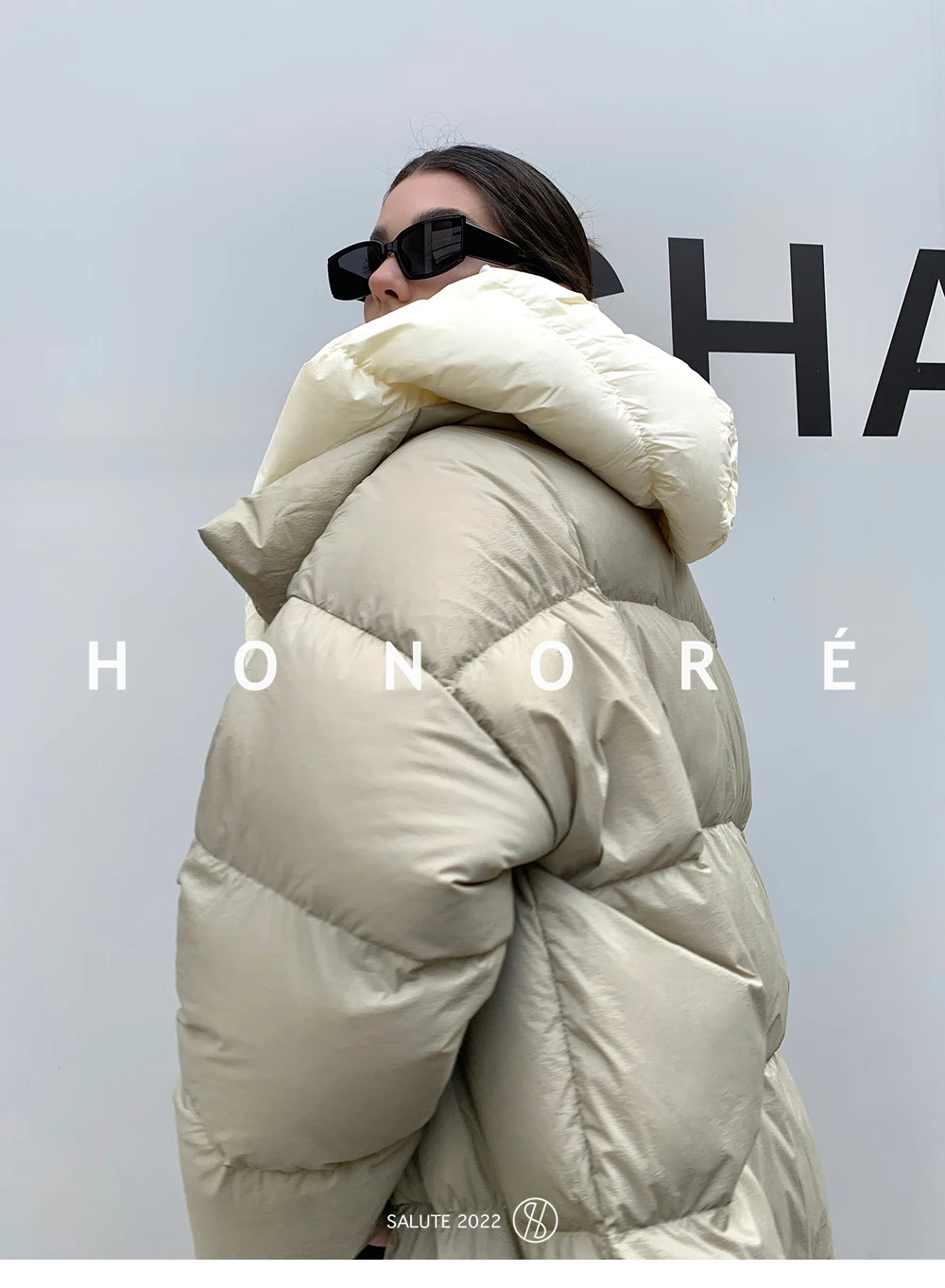 Janveny Fluffy White Duck Down Jacket Women Winter Thickness Warm Long Puffer Coat Hooded Female Fashion Fake Two-piece Parkas