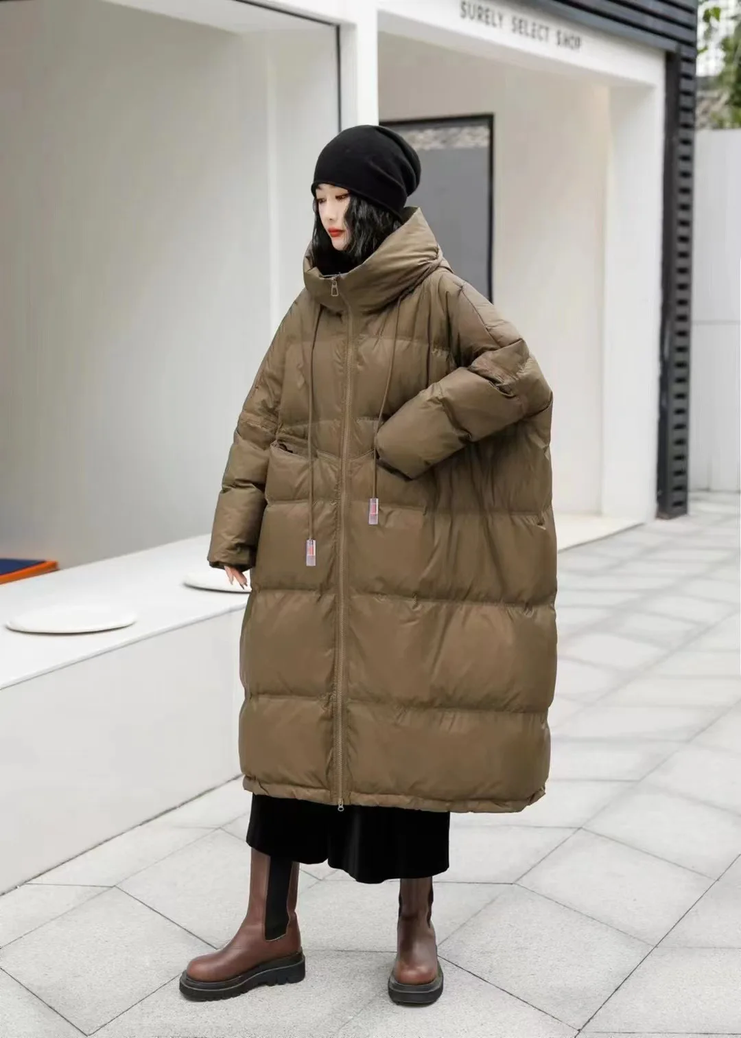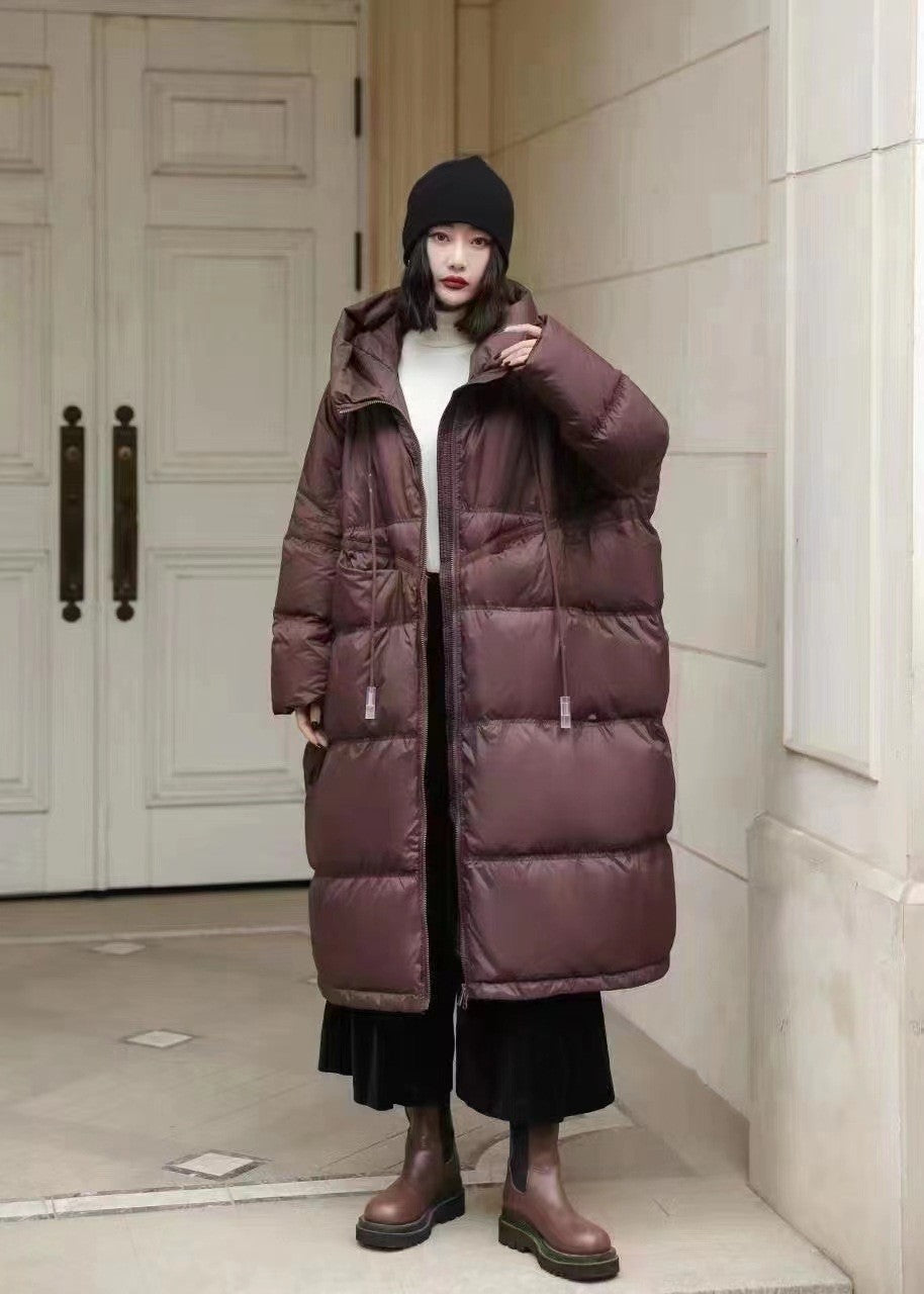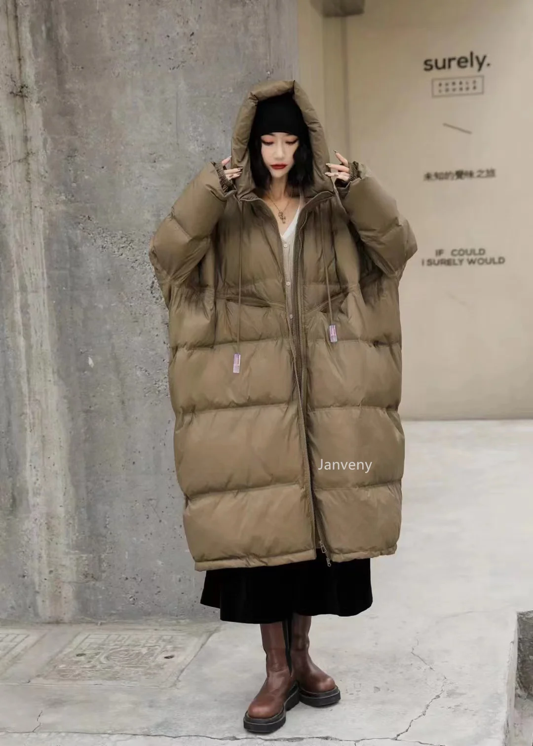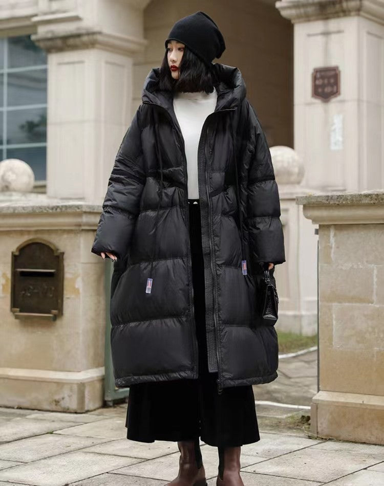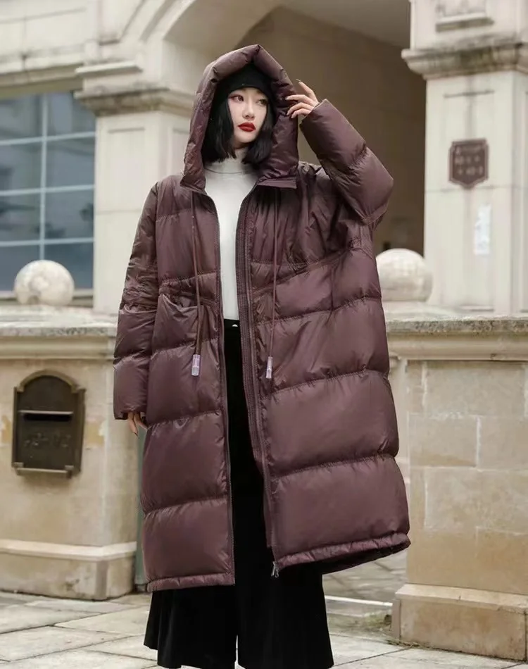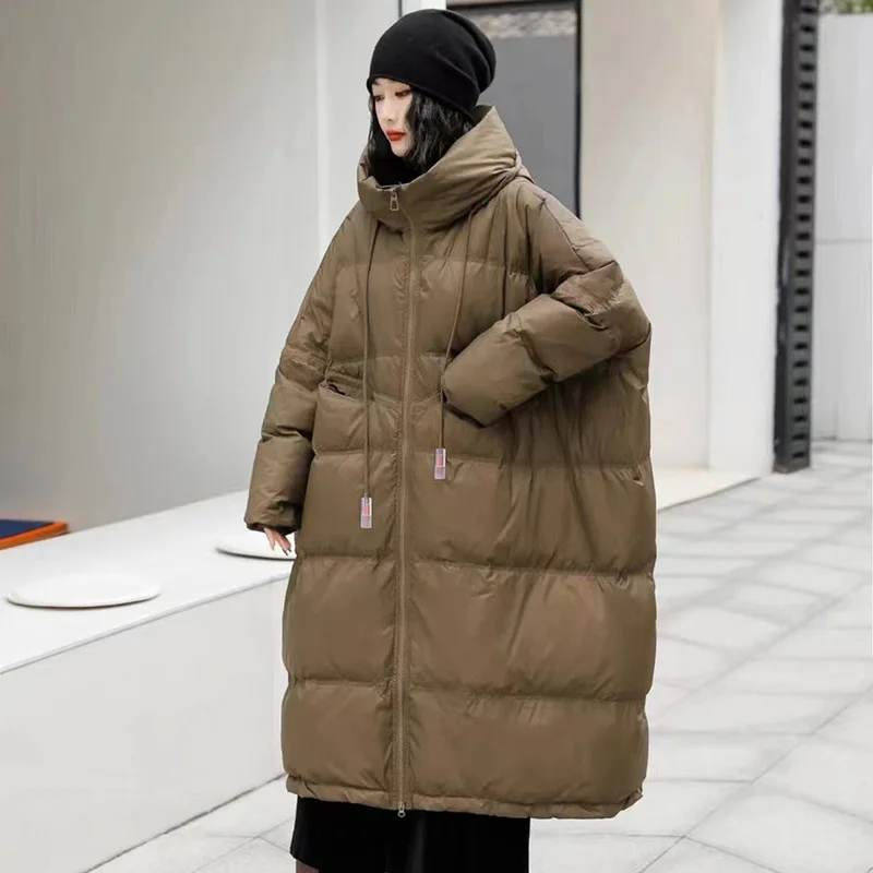 Janveny Women 90% White Duck Down Jacket With Hooded Loose Oversize Long Puffer Coat Autumn Winter Warm Outwear Female Parkas