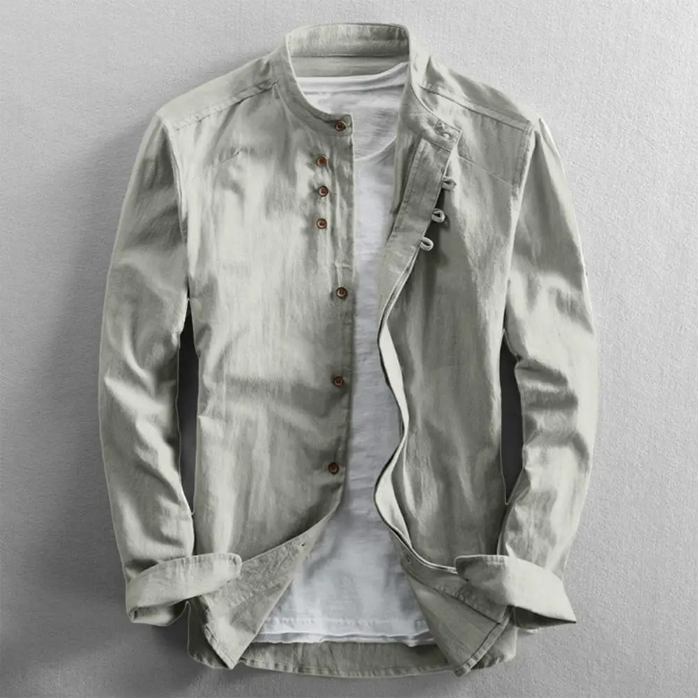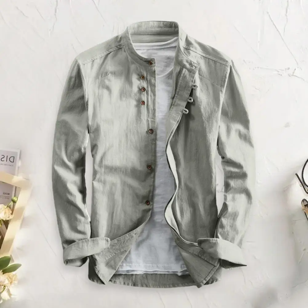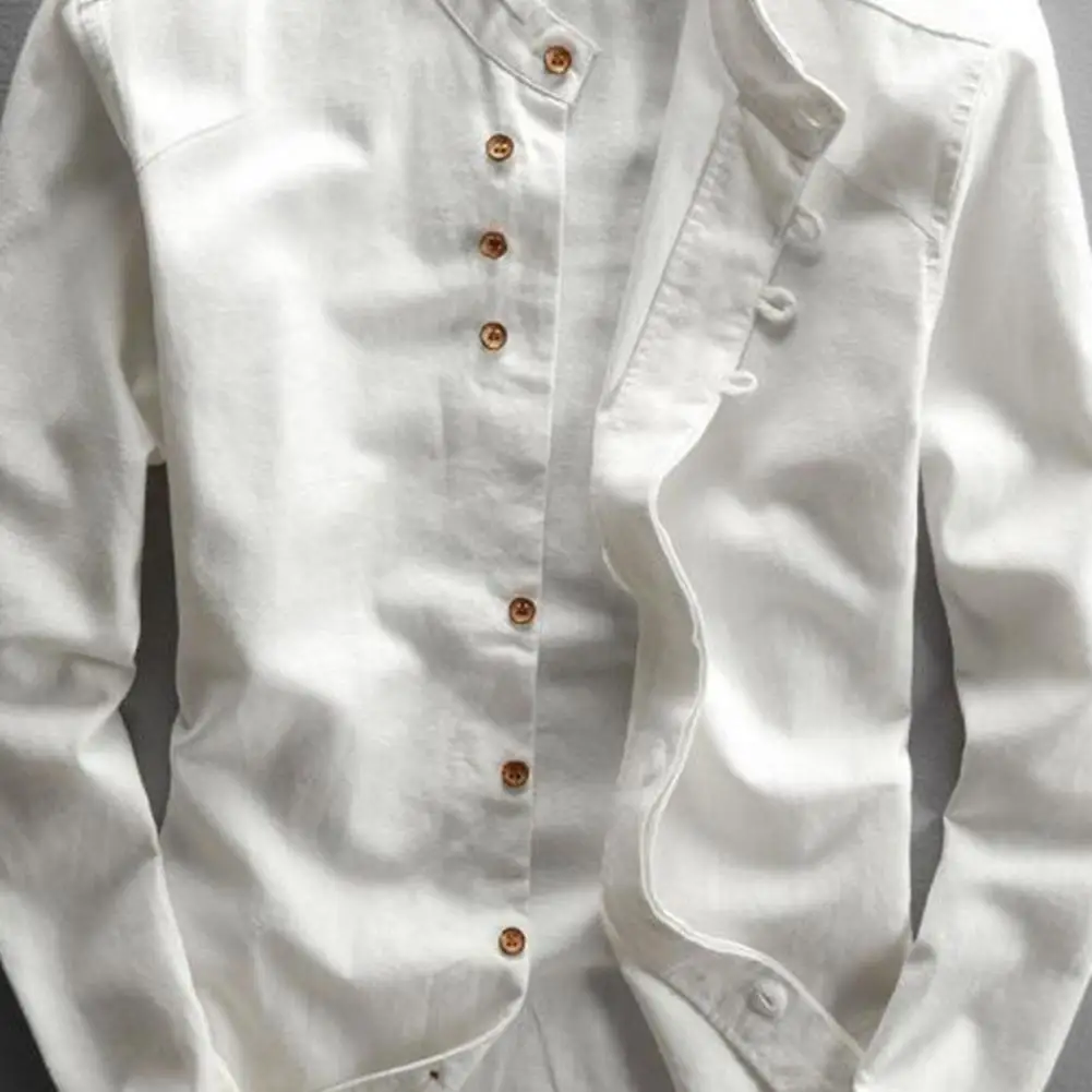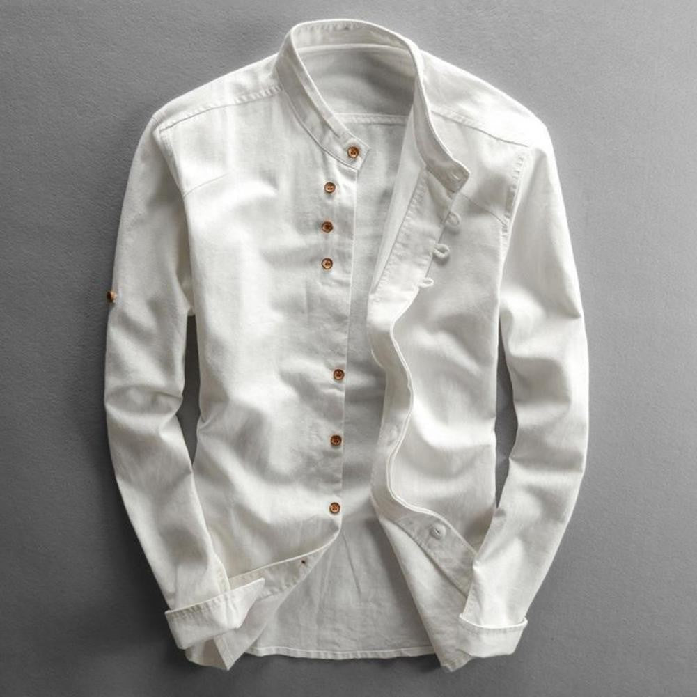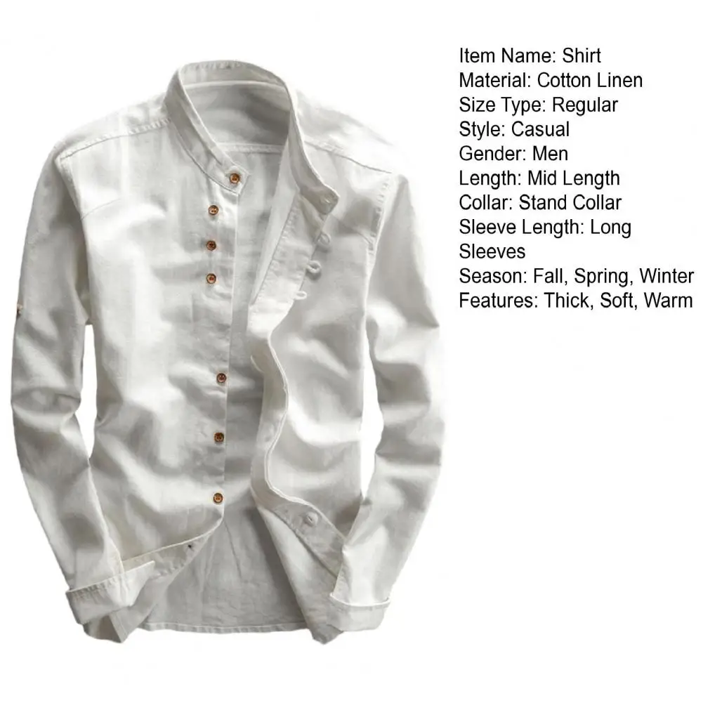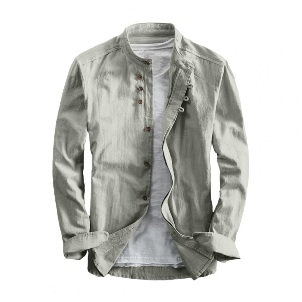 Japan Style Men Cotton Linen Shirt Long Sleeve Slim Fit Single-breasted Cardigan Shirt Harajuku Stand Collar Men Casual Shirts