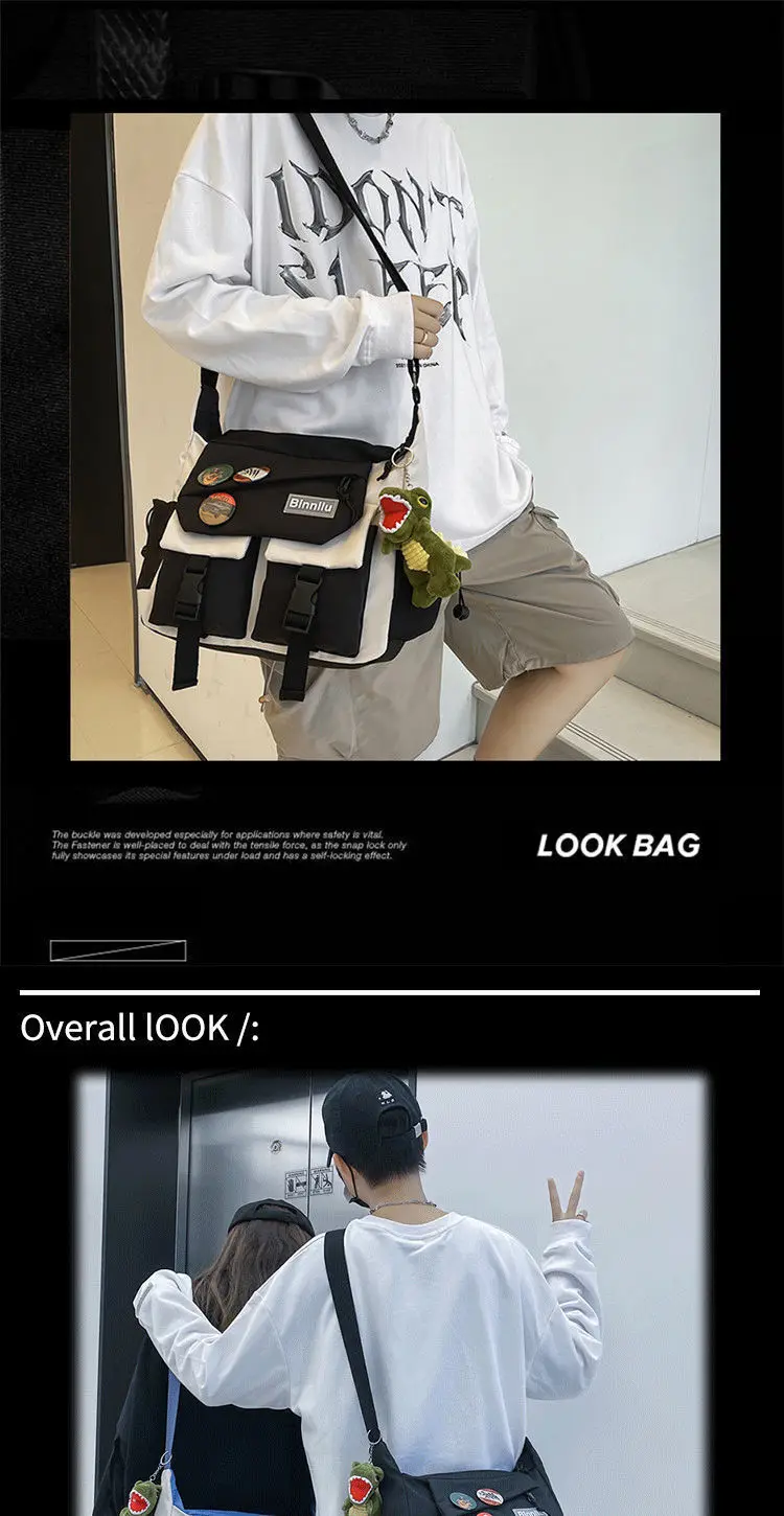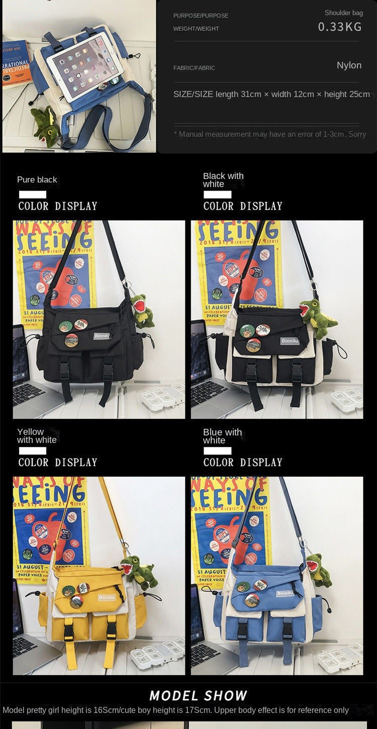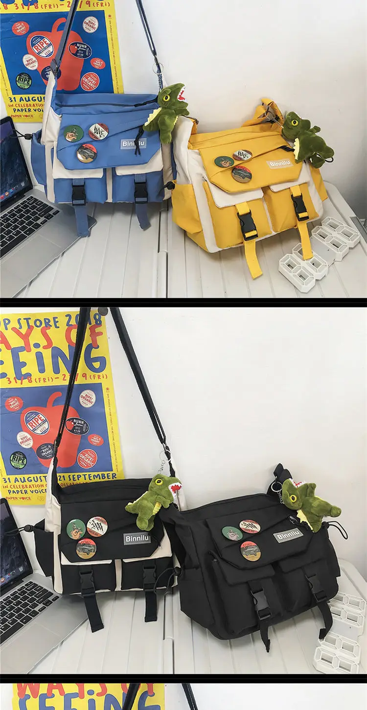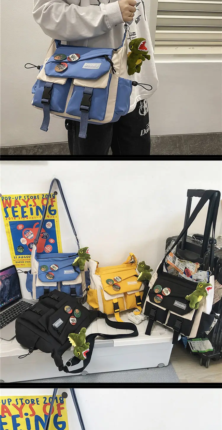 Japanese Simple Messenger Bag Student Nylon Waterproof Canvas Handbag Shoulder Crossbody Bags for Women Men Satchels Bolsas