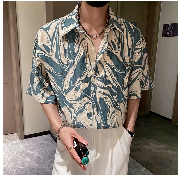 Japanese Summer Ice Silk Flower Shirt for Men Short Sleeve Loose Casual Harajuku Oversized 2023 New Thin Hawaiian Shirt Men