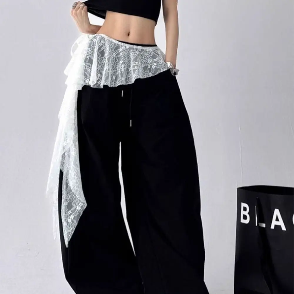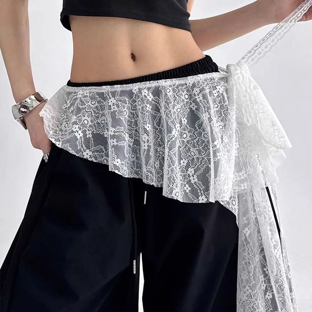 Jeans Pants Decor Embroidered Flower Lace Mini Skirt Irregular See Through Ruched Skirts High Waist Harajuku Pleated Skirts