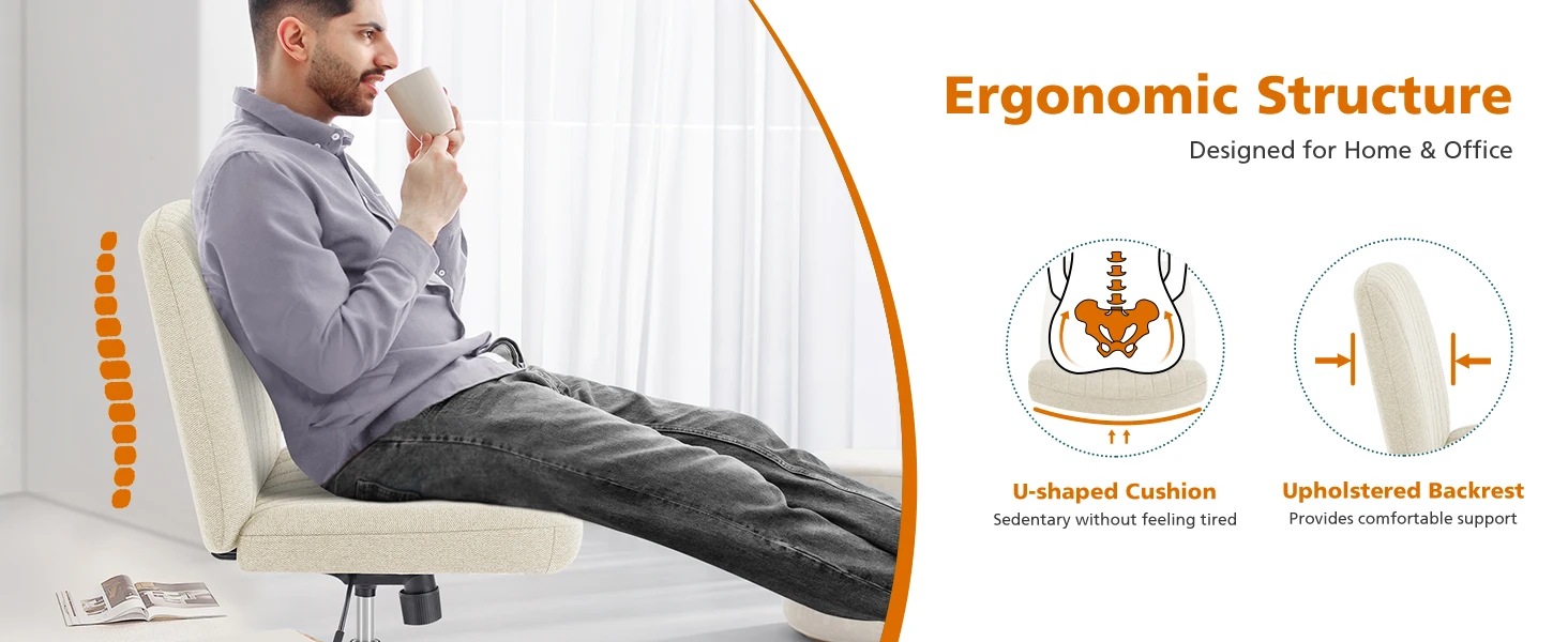?Multiple Adjustment?Adjust the height of the wide office chair to suit your needs and enjoy the convenience of its armless and swivel design. This armless office chair is suitable for most office desks, study tables, and vanity desks, offering flexibility for different tasks. (Seat Height: 15.94''-19.69'')