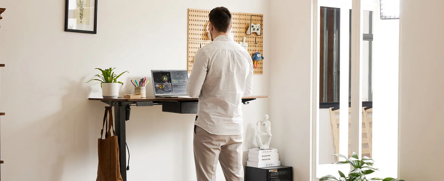 ?Electric Height Adjustment?Our standing desk offers adjustable height ranging from 28.35'' to 46.46'', catering to your individual preferences. Setting it apart from standard office desks, our height adjustable computer desk features 3 memory buttons for customizable settings, allowing you to effortlessly save and recall your preferred height by simply pressing "S".