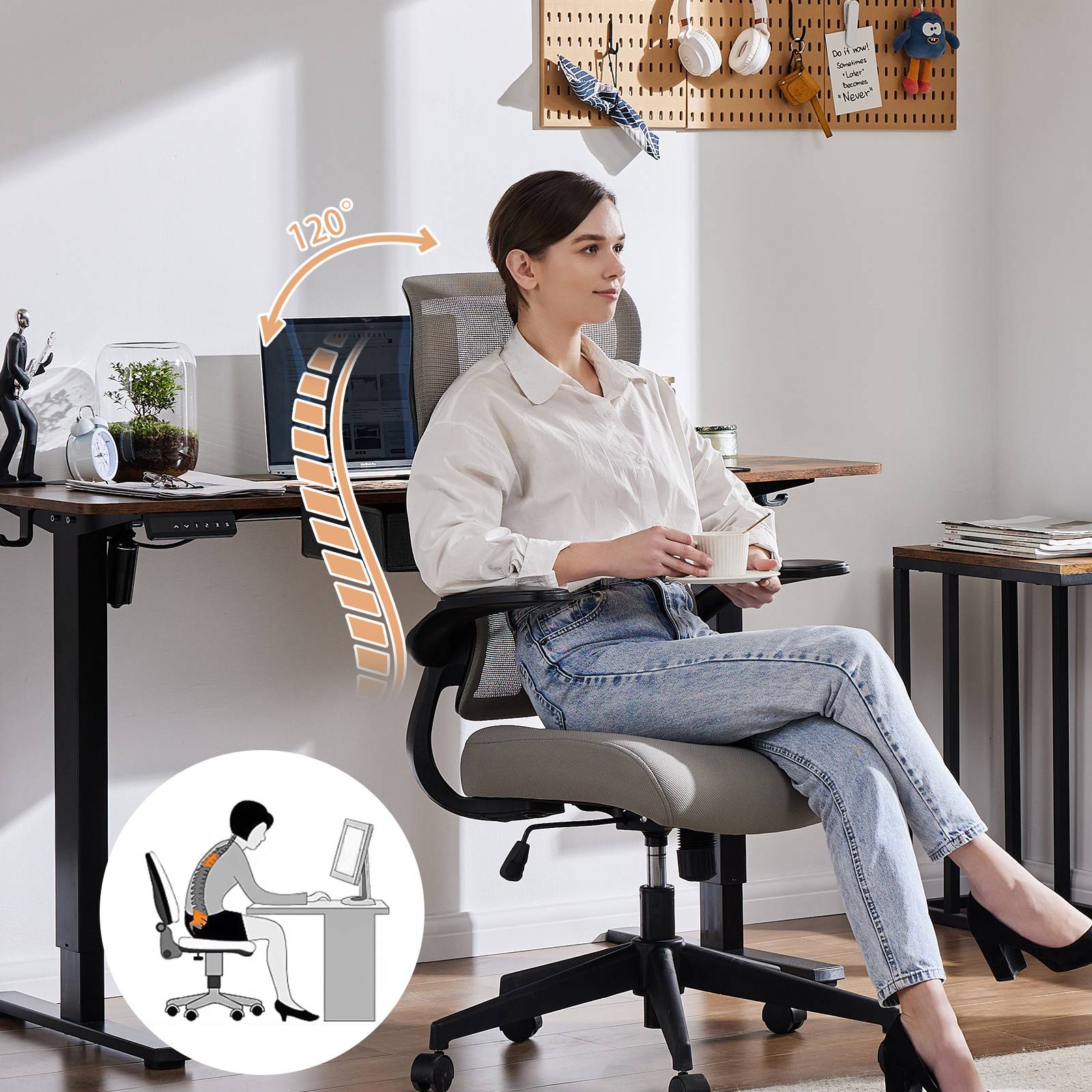 ?Ergonomic Chair?This ergonomic office chair is designed with an S-shaped high back to provide maximum support for your lumbar and shoulders. Take the pain out of your spine. The comfy desk chair tilts 90°-120° and is ideal for relaxing after a long day of sitting.