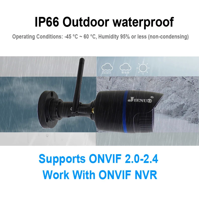 The wirless security camera will send instant movement alert to JIENUO phone app.and record in the sd card (Sound and video) . Automatically take photos and send emails,With the full alerts, we will hardly miss any improtant events going on or happened.