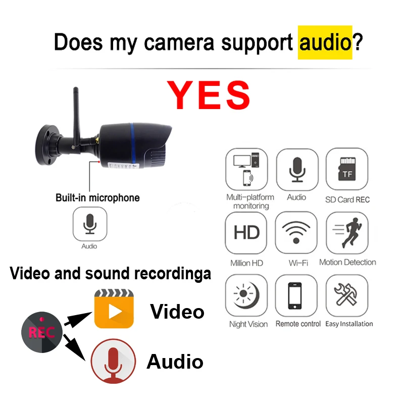 Support for recording video and sound via a Micro SD card or computer, you can remotely play back video and sound (history) via the mobile app.