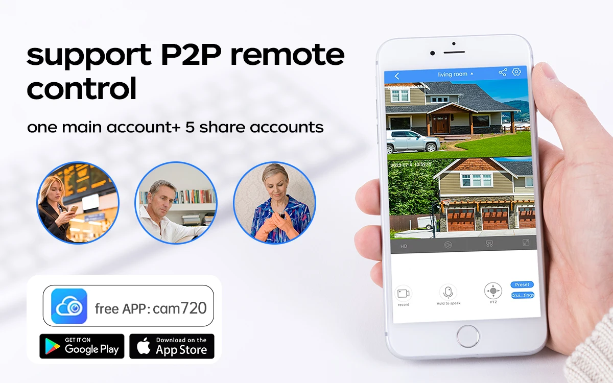 Support mobile phones (iOS, Android), support tablets (iPad, Android), support computer (Windows), multi system compatibility.P2P technology let you could get a live broadcast of the capture video anytime, anywhere.