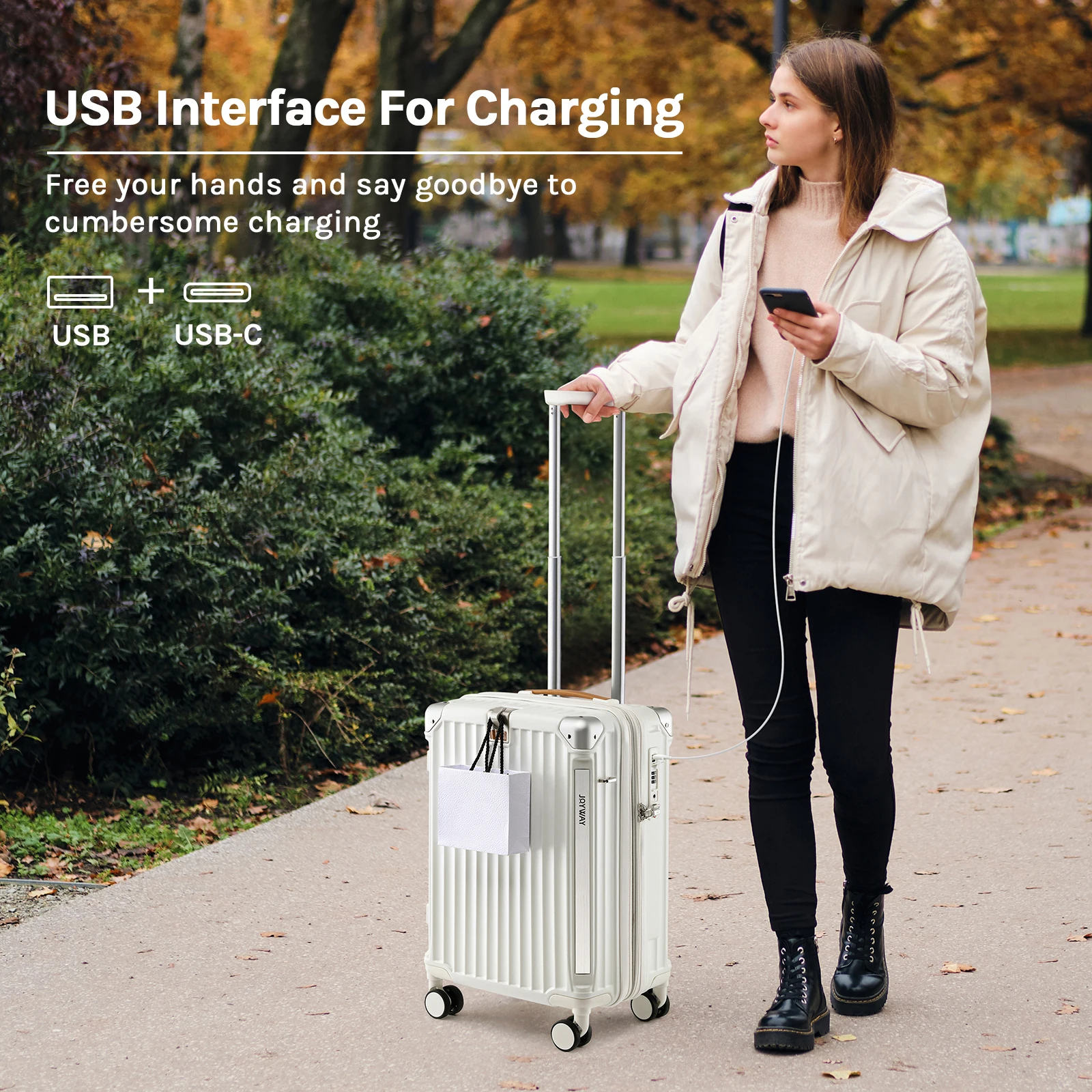Multifunctional Suitcases: TSA certified combination locks keep your belongings safe and organised in your luggage. Cup holder on the back to hold a water bottle, freeing up your hands. USB and USB-C charging ports on the side of the 20" suitcase only (Power bank not included).