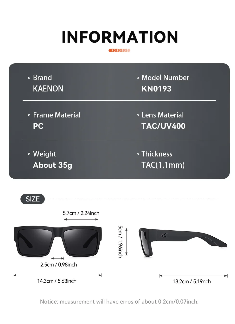 KAENON Fashion Square Versatile Polarized Sunglasses Men Women Sports Fishing Driving Sun Glasses UV400 Eyewear