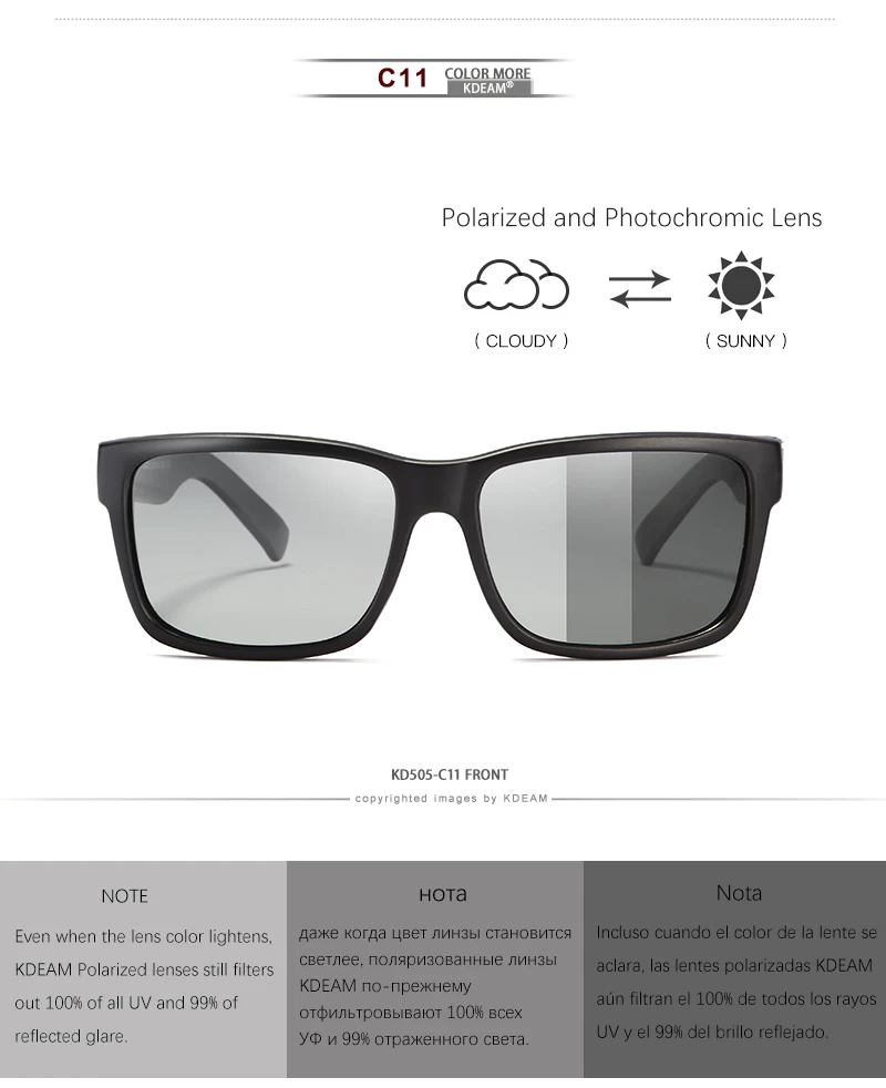 C11 color is polarized and Photochromic lense.