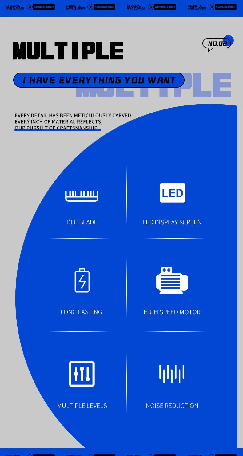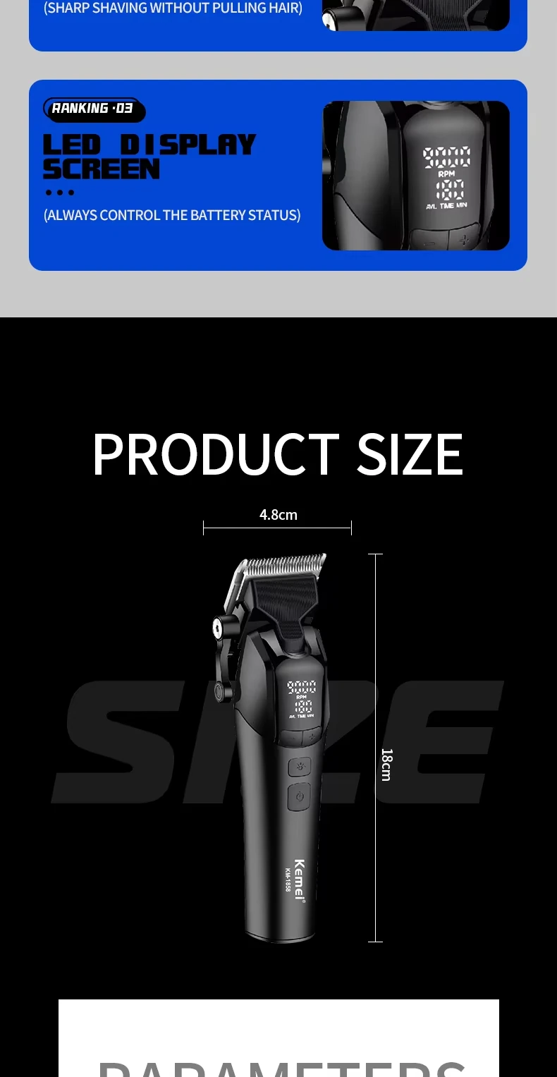 Kemei KM-1858 10W Barber Professional Electric Hair Clipper DLC Blade Trimmer Cordless USB Charging Rechargeable Hair Clippers