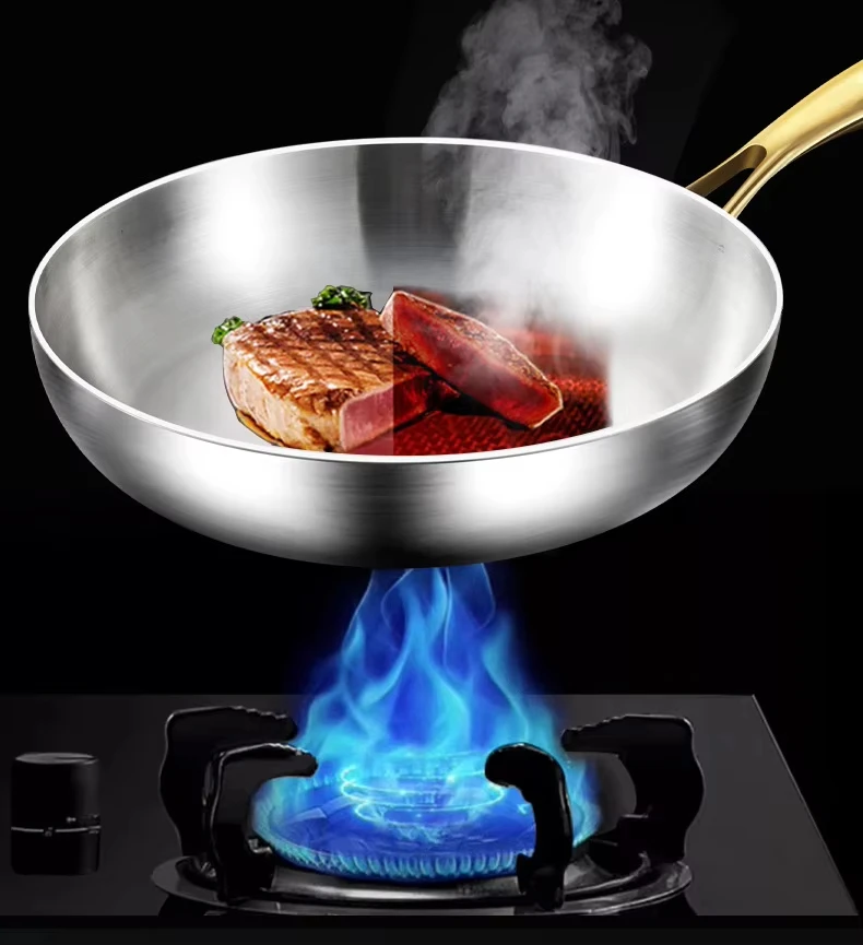 KEMORELA 316 Stainless Steel Frying Pan With Golden Handle Wok Pan Nonstick Cooking Fried Steak Gas Stove Pot Universal Pan