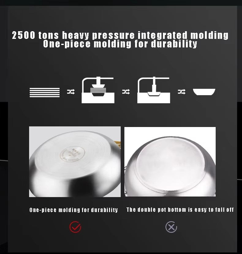 316 Stainless Steel Construction :Crafted from high-quality 316 stainless steel, this frying pan offers superior durability and resistance to rust and corrosion, ensuring long-lasting performance.