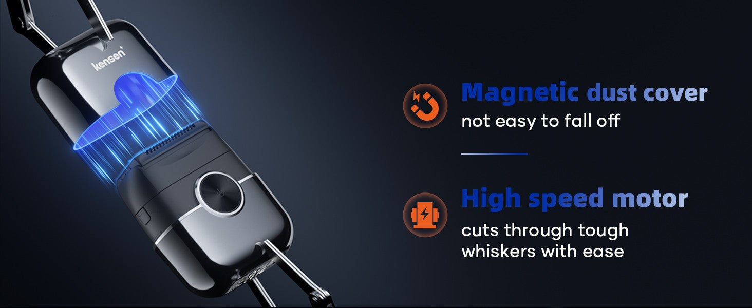 Professional Travel Care Device: The portable mini facial shaver is equipped with a magnetic dust cover to protect the high-quality blades. The compact body integrates travel lock technology and portable wireless operation to ensure perfect grooming during business trips.