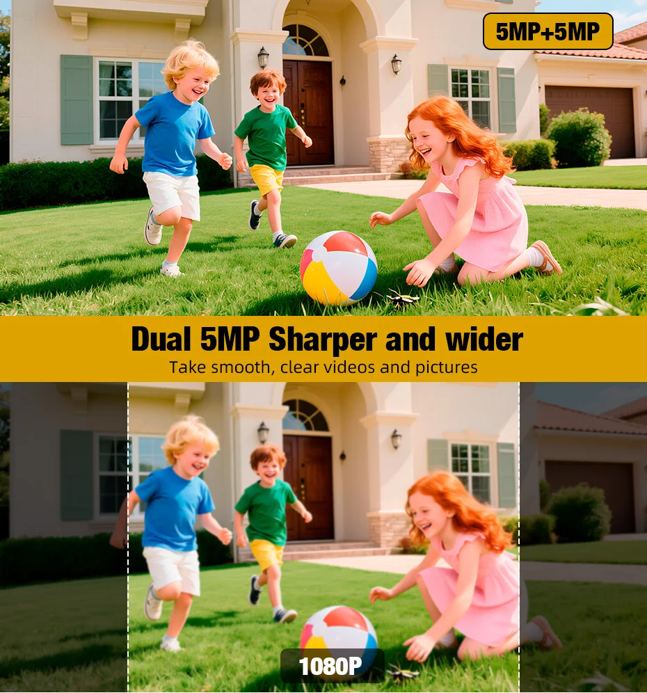 Equipped with dual lenses, this camera offers versatile viewing angles, enhancing surveillance coverage in any outdoor environment.