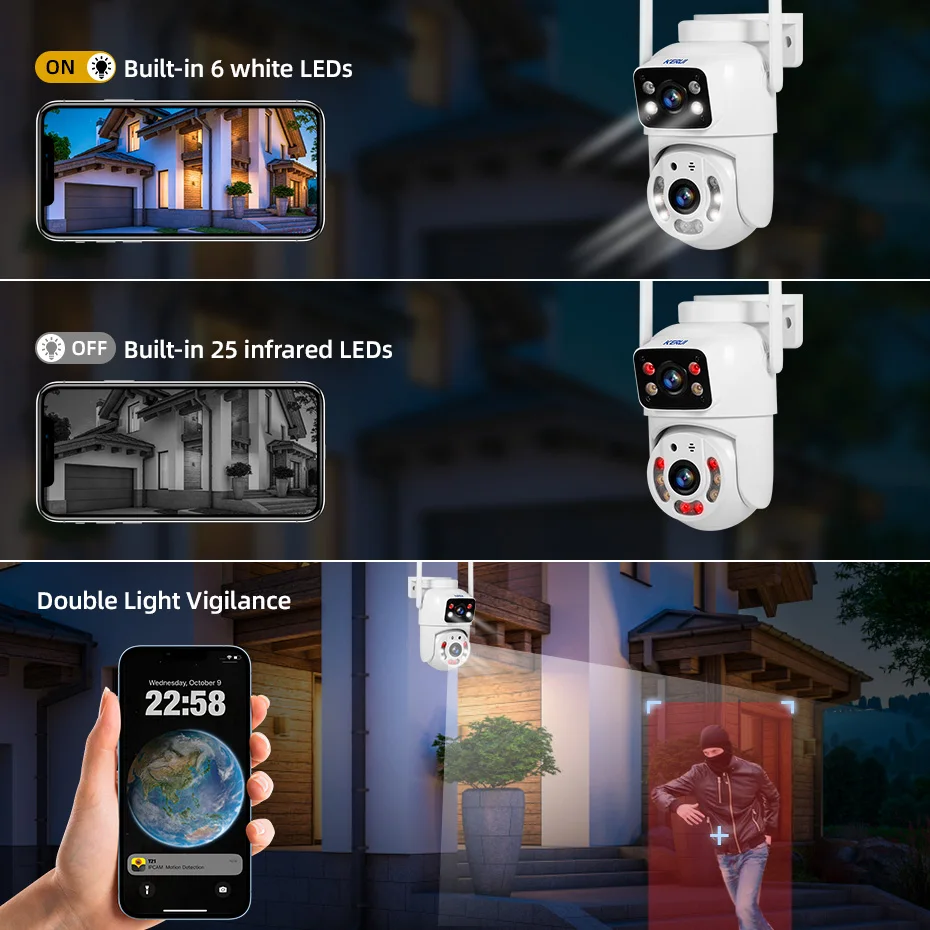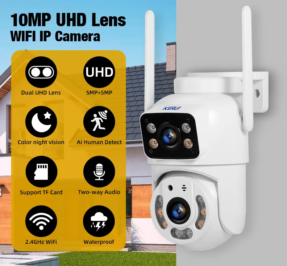 KERUI Dual Lens HD 10MP 5K PTZ Wifi IP Camera Wireless Outdoor CCTV Audio Video Surveillance Camera Night Vision Free AI Detect
