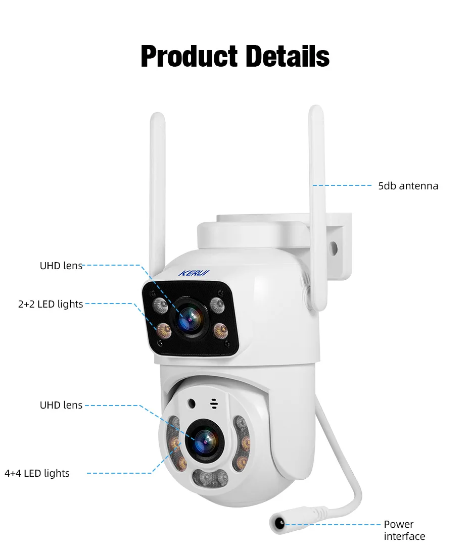KERUI HD 10MP 5K PTZ Wifi IP Camera Dual Lens Dual Screen Wireless Outdoor CCTV Audio Video Surveillance Camera