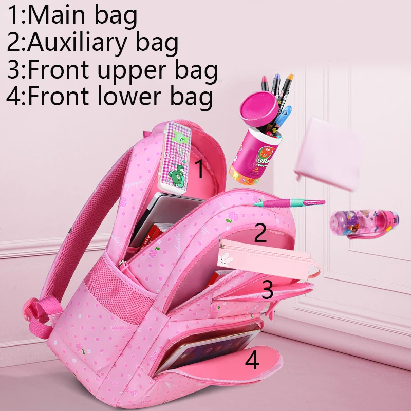 Kid Girl Backpack Student School Bag Fruit Flowers Navy For Children Teenage Schoolbag Primary Waterproof Bookbag Girl Backpack