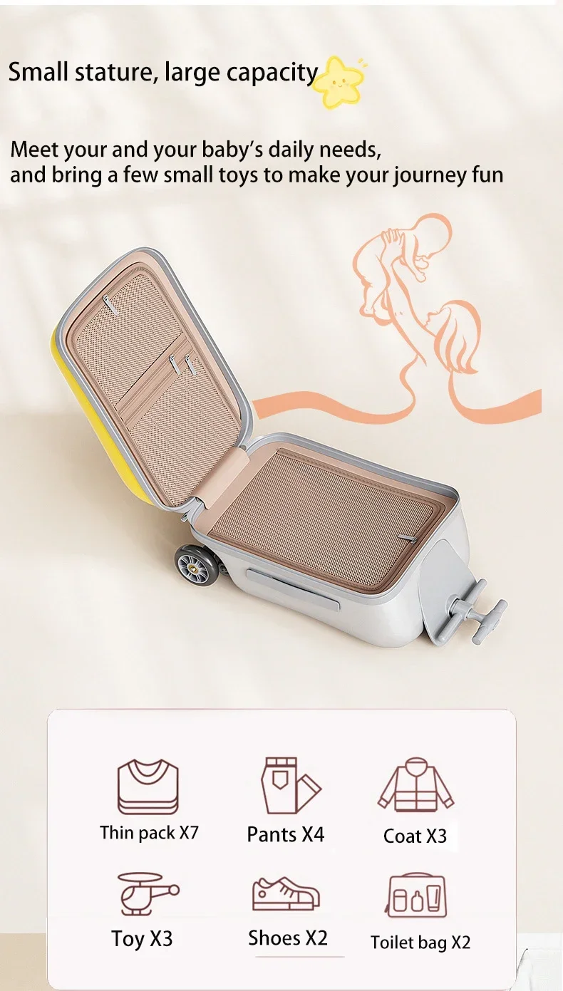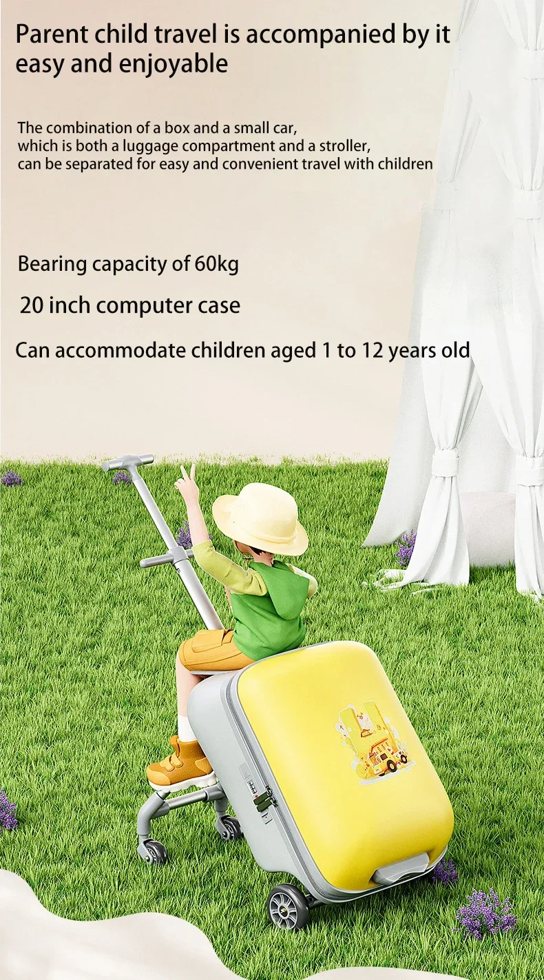 Kids Travel Trolley Suitcase Children Luggage Pulling Cart Travel Seat Carrier Bag Riding Suitcase for Baby Carry-On Luggage