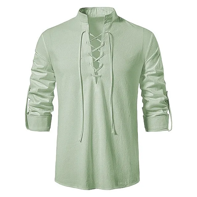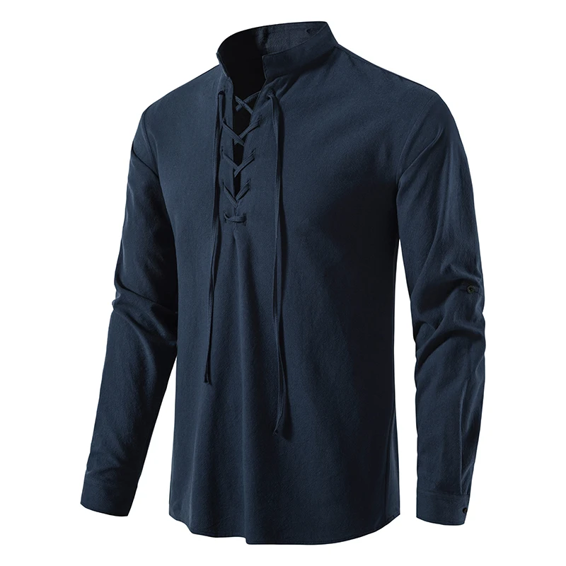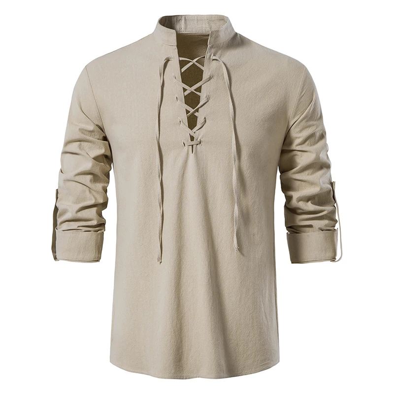 King Billion Men's Shirts Casual Men Cotton Linen Long Sleeve T-shirt Spring Autumn Vintage Shirt US Size Drawstring Neck