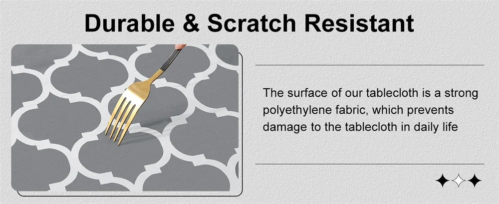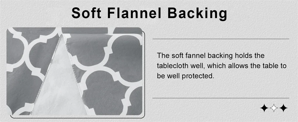 Kitinjoy durable tablecloth is made of thick vinyl and premium flannel backing that is thicker than others'. Our vinyl tablecloth can be reused many times and provides effective protection of your table from stains and spills, helps prevent dust and prevents the formation of dents, chips and scratches, and prolongs the service life of the table.