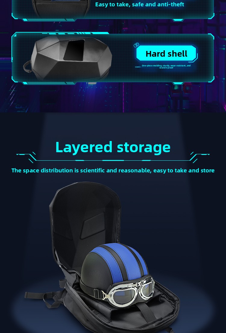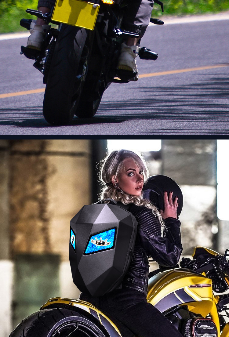KLQDZMS Motorcycle Backpack LED Light-emitting Waterproof Motorcycle Helmet Shoulder Bag Men's ABS + PC Laptop Riding Schoolbag