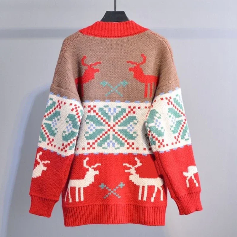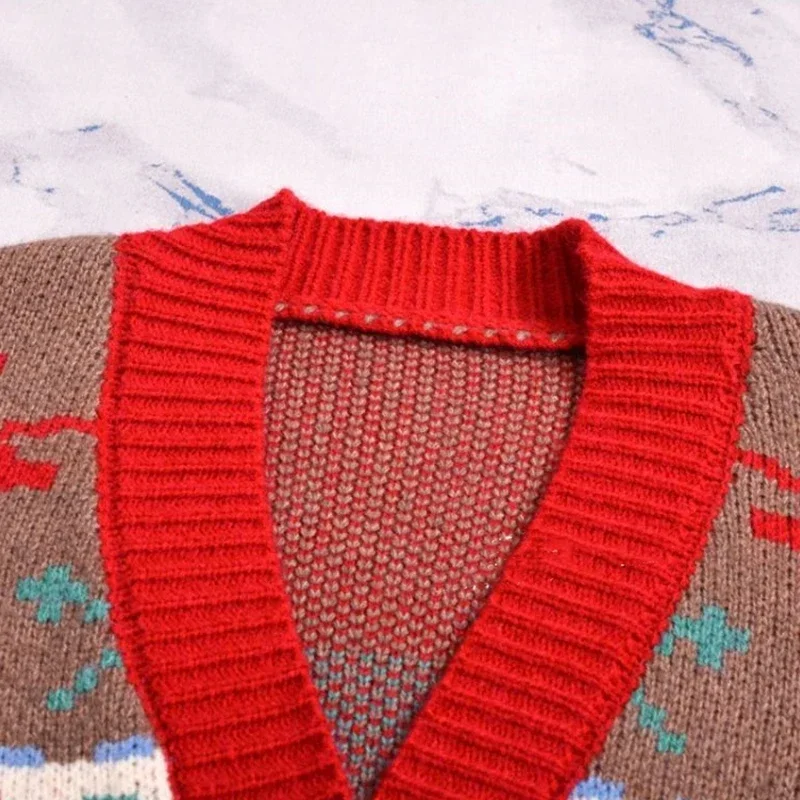 Knitted Christmas Sweater Knit Sweaters For Men Cardigan Couple Vintage Sweater Cardigans Coat Y2K Jacket Men's Clothing
