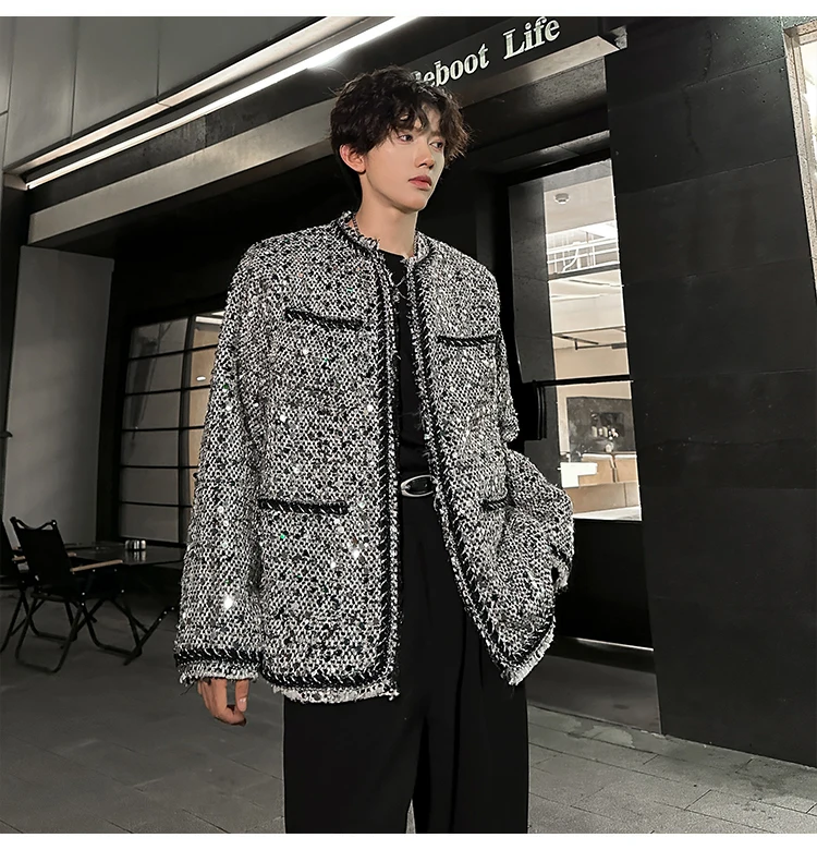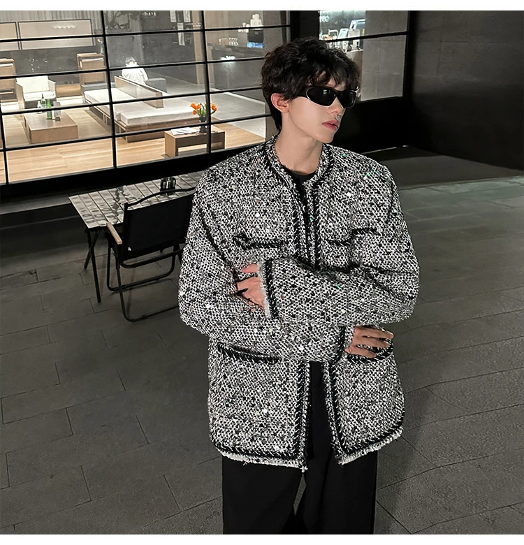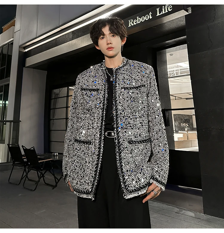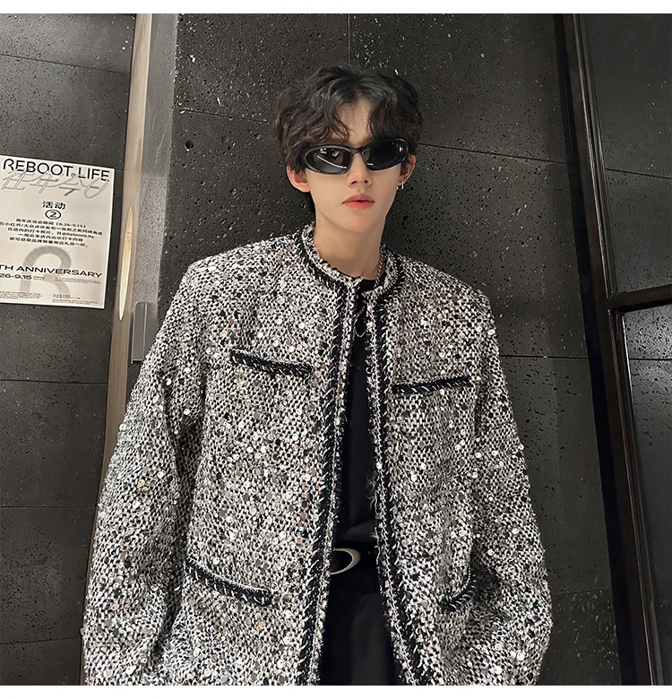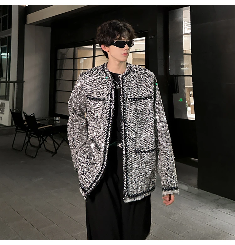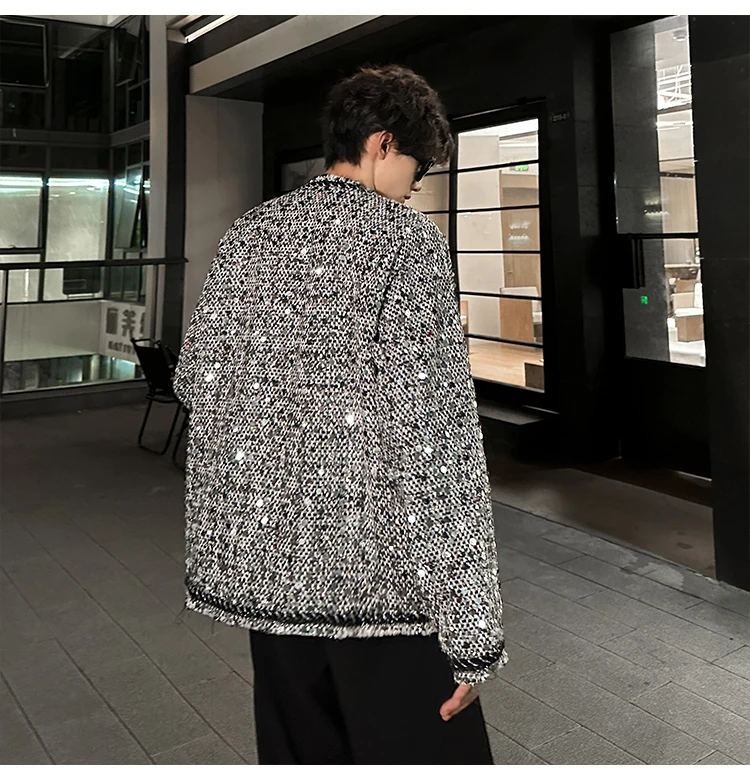 Korean Fashion Shiny Sequin Jacket Sliver Round Collar Long Sleeve Jackets Coats Autumn New Ladies Gentleman High Street