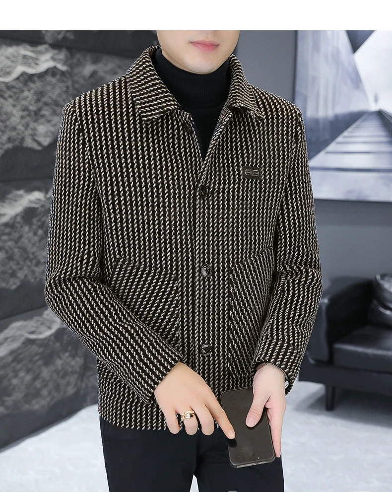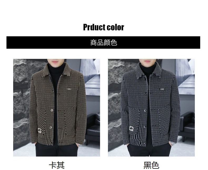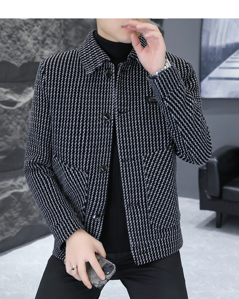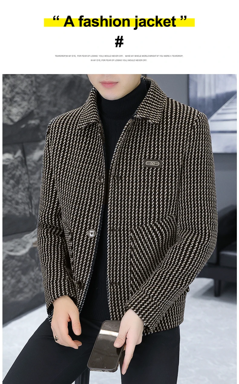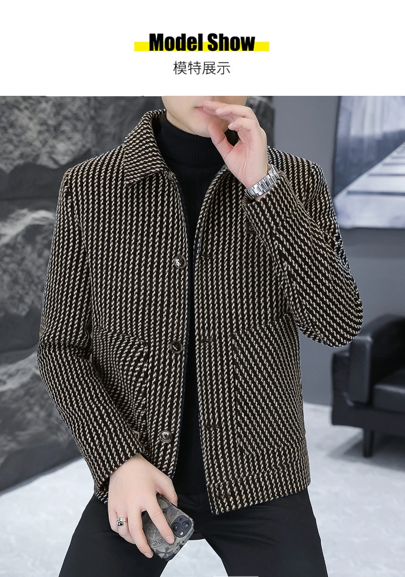 Korean Fashion Woolen Jacket for Men 2023 Winter Plaid Casual Business Trench Coat Slim Social Office Street Wear Short Overcoat